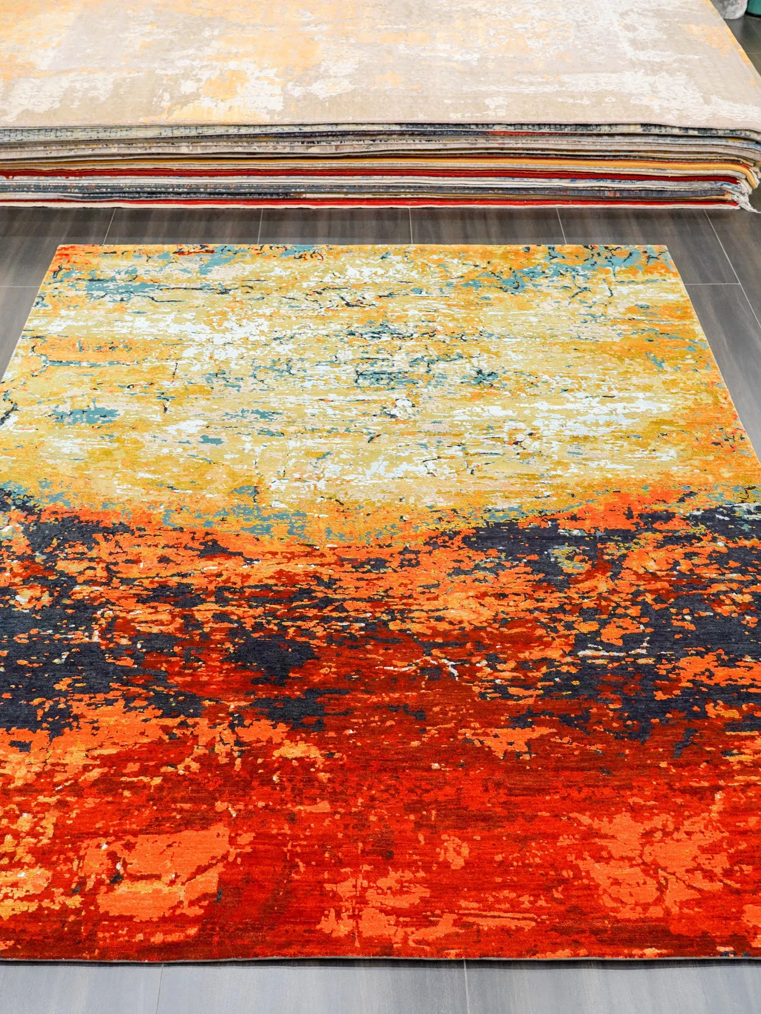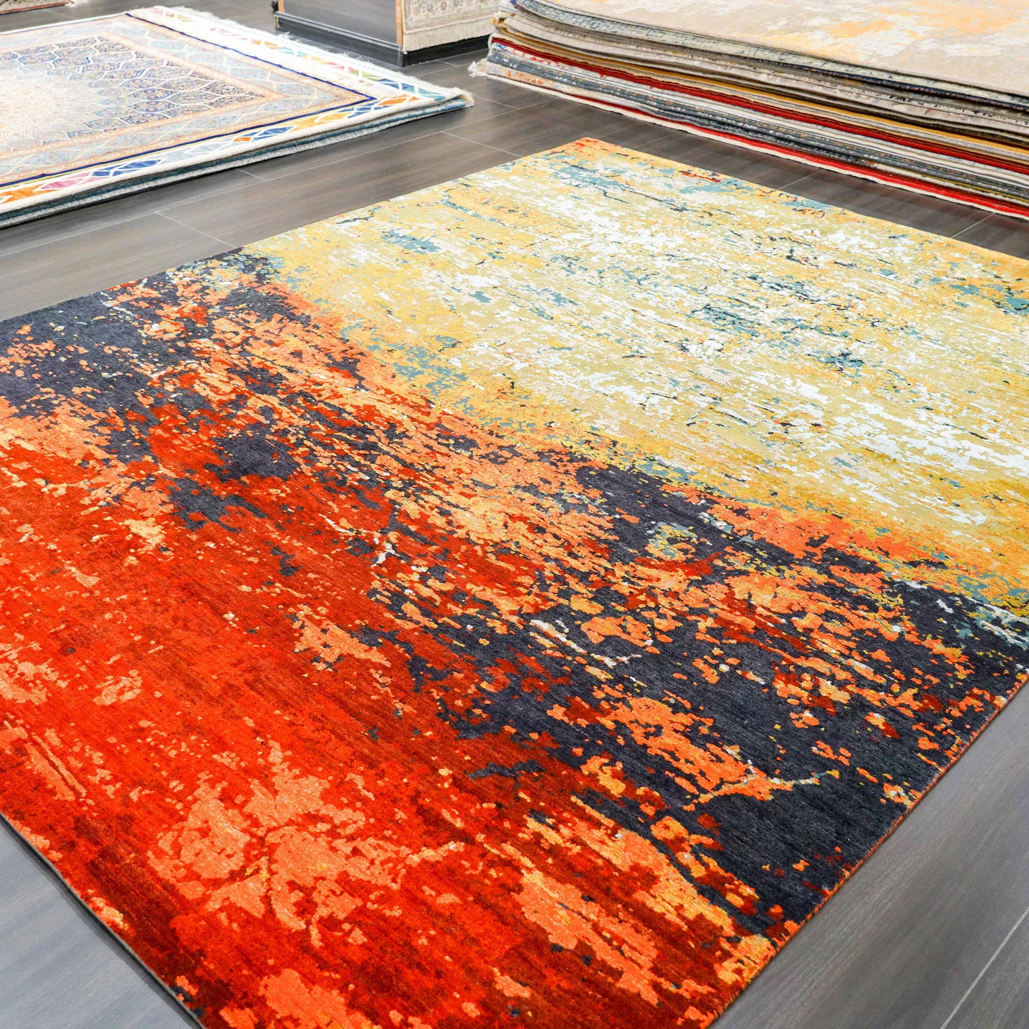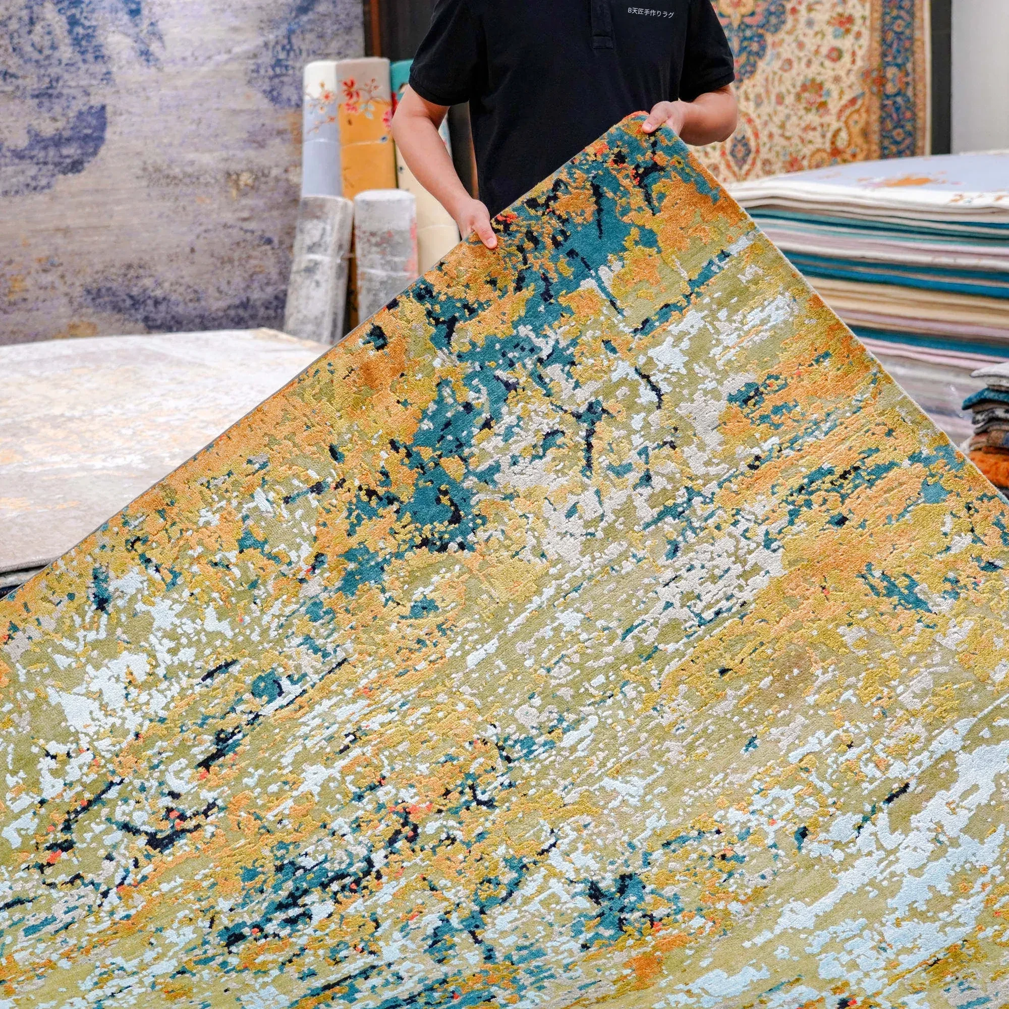 天匠の輸入手作りウールラグ - シンプルでスタイリッシュなリビング・ダイニング用カーペット、全室対応、244x305cmの贅沢なサイズ。お部屋を華やかに彩る一品!