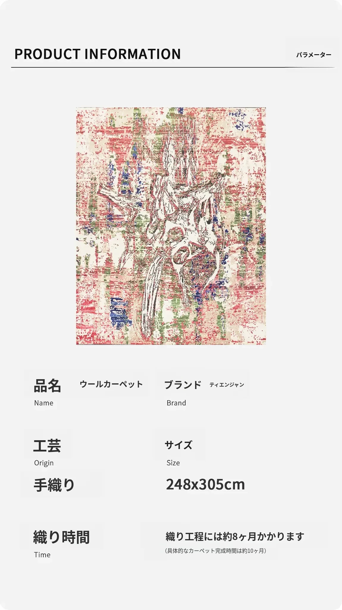 天匠の輸入手作りウールカーペット|高級感あふれる厚手デザイン|寝室にぴったりの248x305cmサイズで、心地よい温もりをお届けします。
