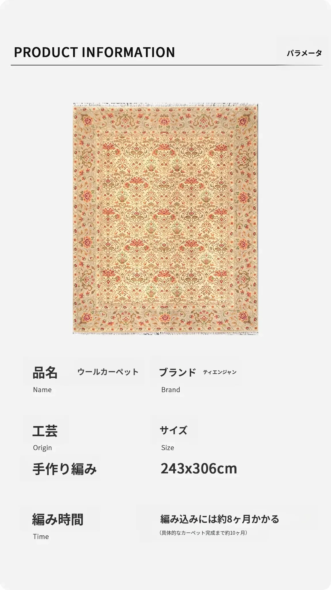 天匠輸入手作ウールラグ - 寝室や書斎に最適!シンプルで高級感あふれるデザイン、243x306cmの広々サイズで、別荘や家庭にぴったり。心地よい温もりを感じて、上質な空間を演出します。