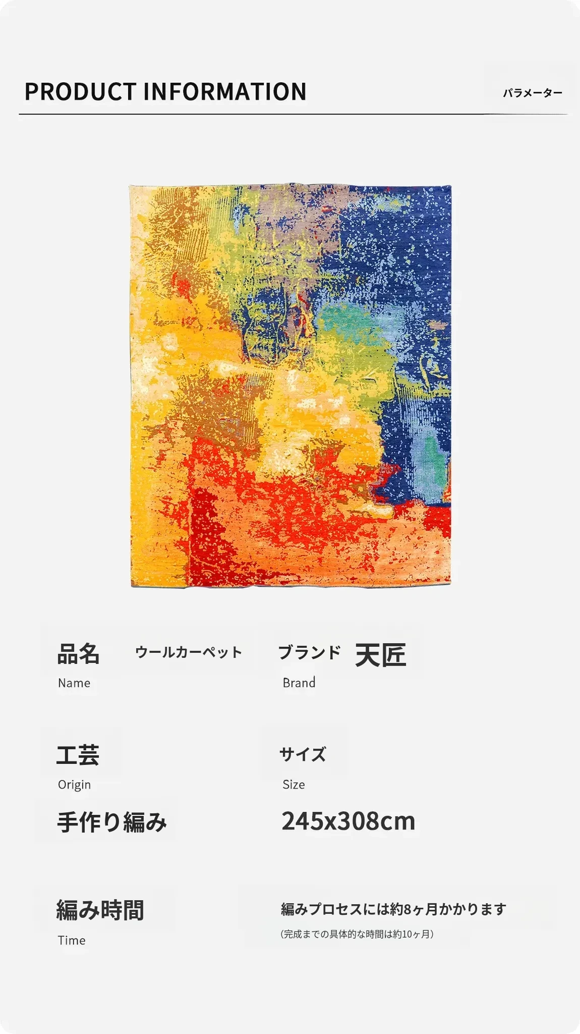 天匠輸入手作ウールラグ ベッドルーム用 モダンラグ 245x308cm お手入れ簡単なラグで軽やかな贅沢感を演出!
