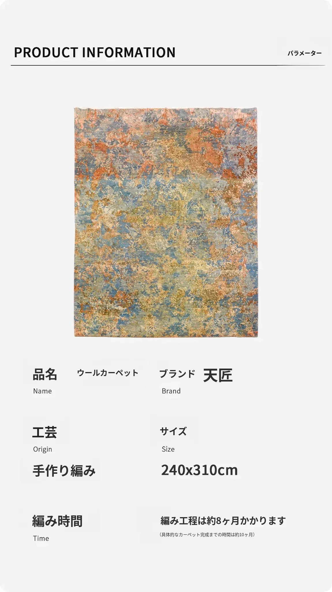 天匠輸入の手作りウールカーペット - モダンでラグジュアリーな240x310cm、リビングや寝室にぴったりの高級感あふれるデザイン!あなたの空間を特別に演出します。