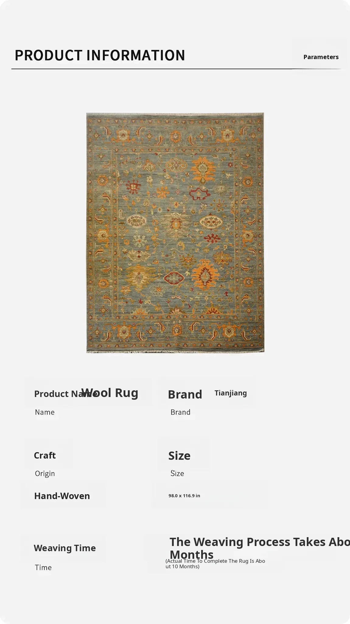 Tianjiang Imported Handmade Wool Area Rug - Modern Minimalist Luxury Carpet for Villa Living Room, 249x297cm