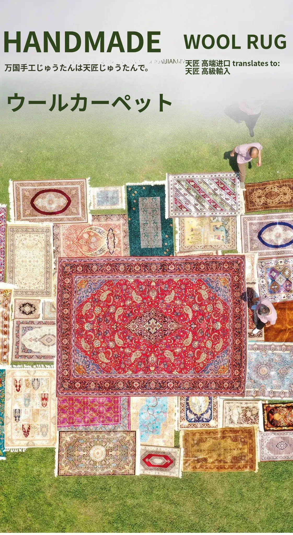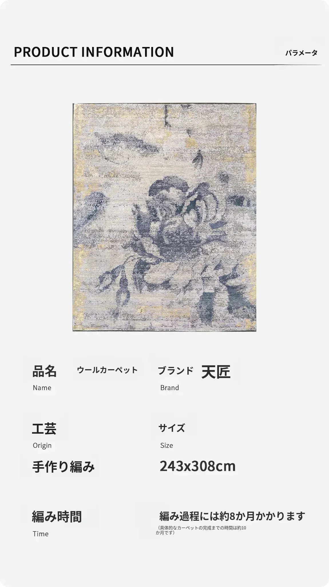 天匠の輸入手作りウールカーペット|シンプルモダンでどんなインテリアにもぴったり!リビングに最適な243x308cmサイズのラグ。心地よい肌触りと耐久性で、あなたの空間を華やかに演出します!