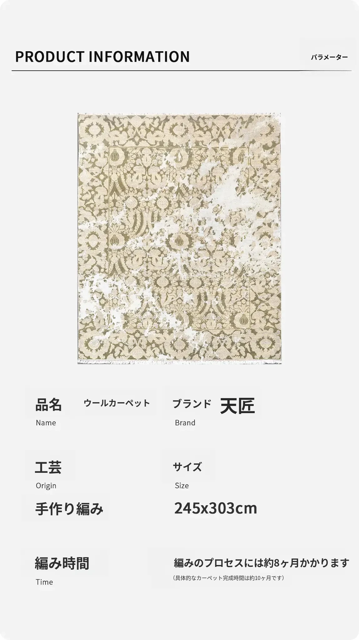 天匠インポート手作りウールカーペット - ヴィラのリビングにぴったりの抽象スタイル、どんなインテリアにも調和する245x303cmのラグで、贅沢な空間を演出します!