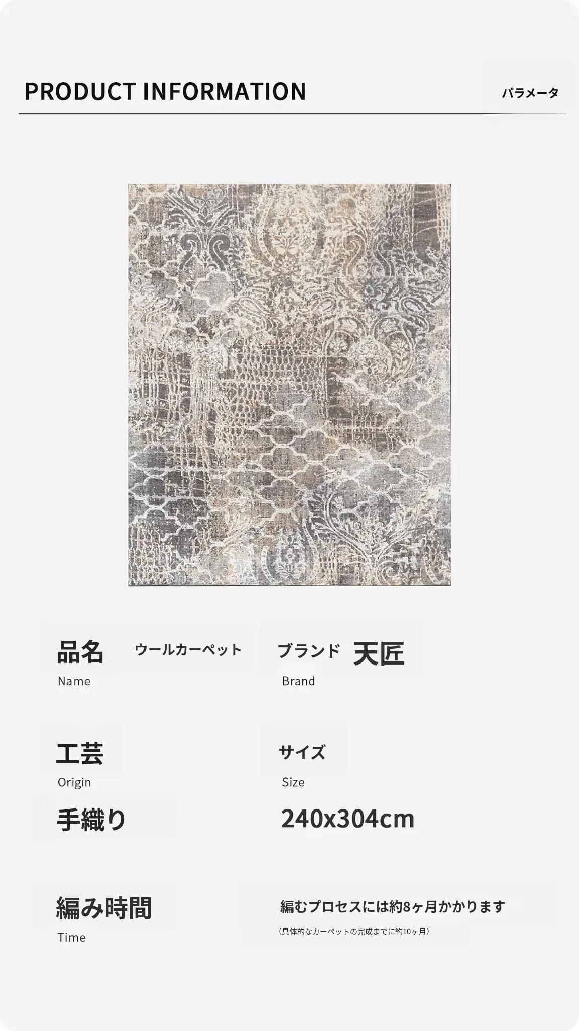 天匠輸入手作ウールカーペット - シンプルでモダンな欧州スタイル、リビングや寝室にぴったりの240x304cmのラグ。高級感溢れるデザインで、心地よい空間を演出します!