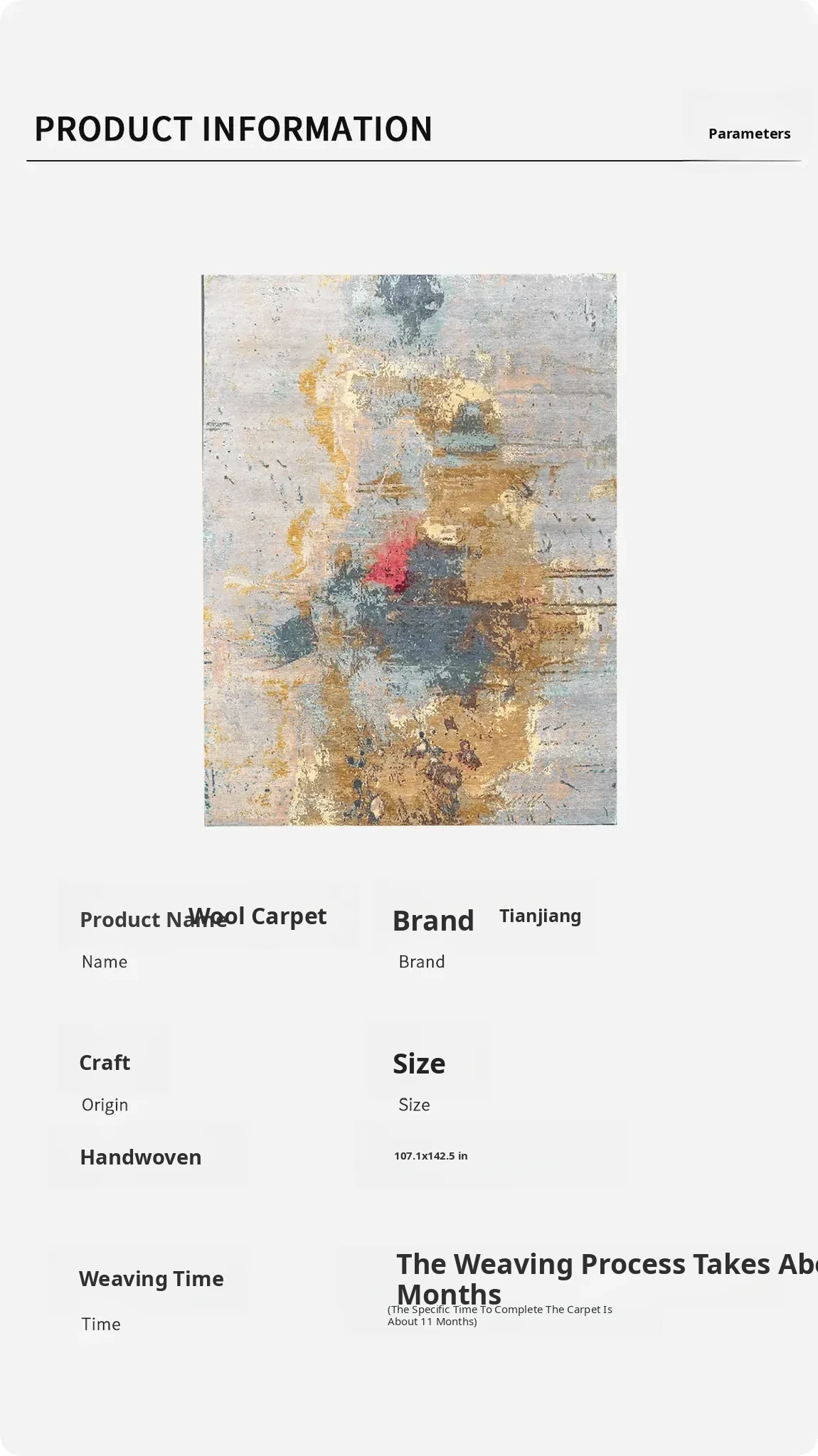 Tianjiang Imported Handmade Wool Carpet - Luxurious Minimalist Area Rug for Living Room and Dining Room, Perfect for Villas - 272x362cm