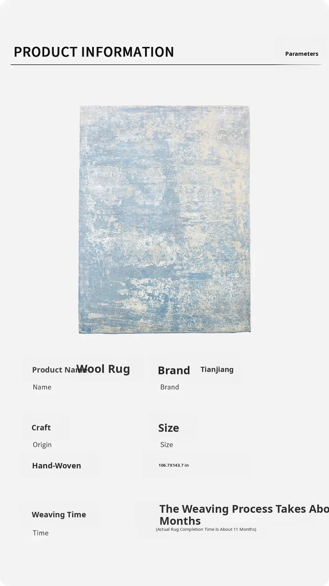 Tianjiang Imported Handmade Wool Carpet - Luxury Modern Minimalist Area Rug for Villa Bedroom and Living Room, Size 271x363cm, Elevate Your Space with Elegance and Comfort