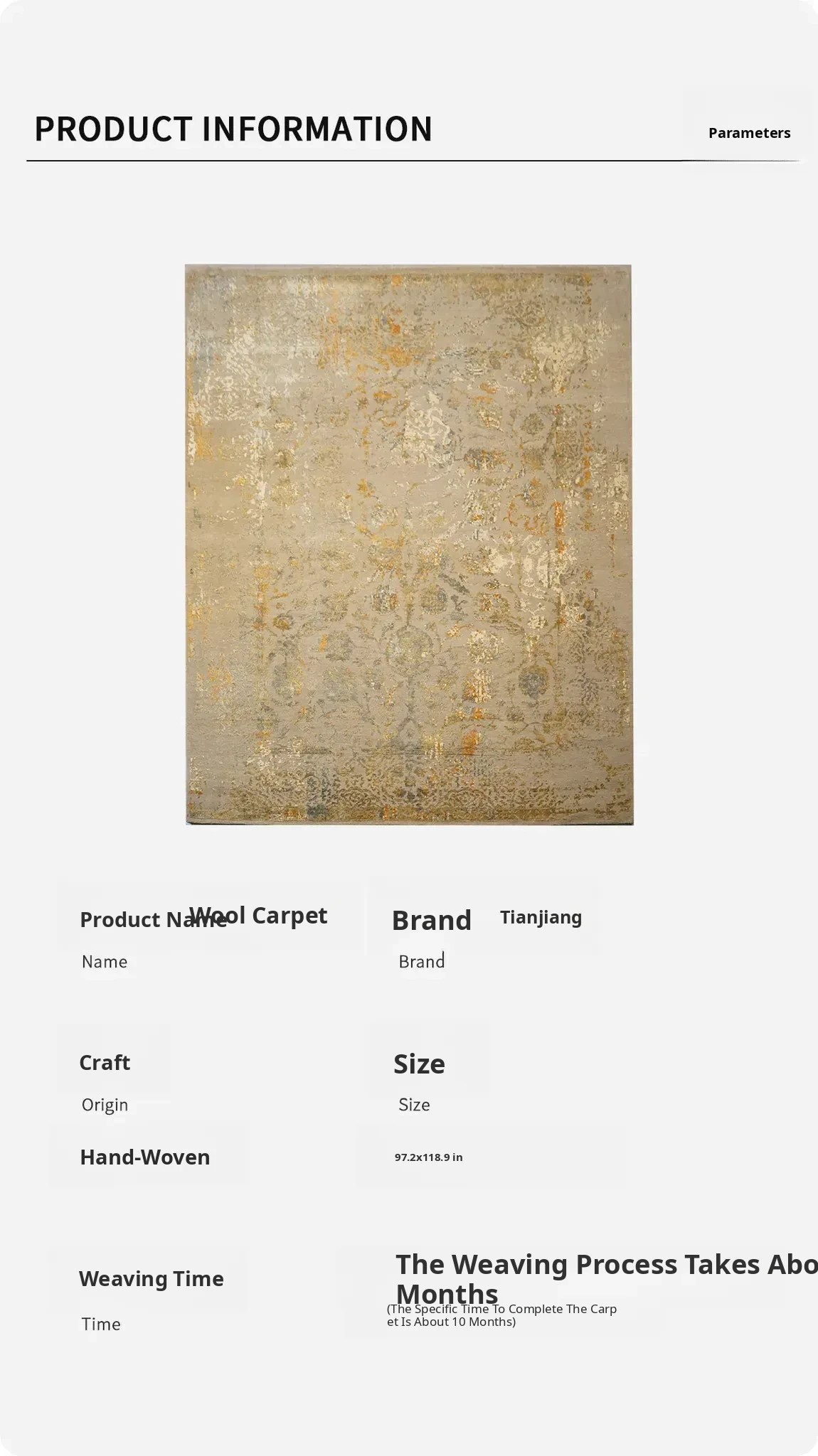 Tianjiang Imported Handmade Wool Carpet - Minimalist Luxury Area Rug for Living Room and Villa Bedroom, Size 247x302cm - Elevate Your Space with Timeless Elegance!