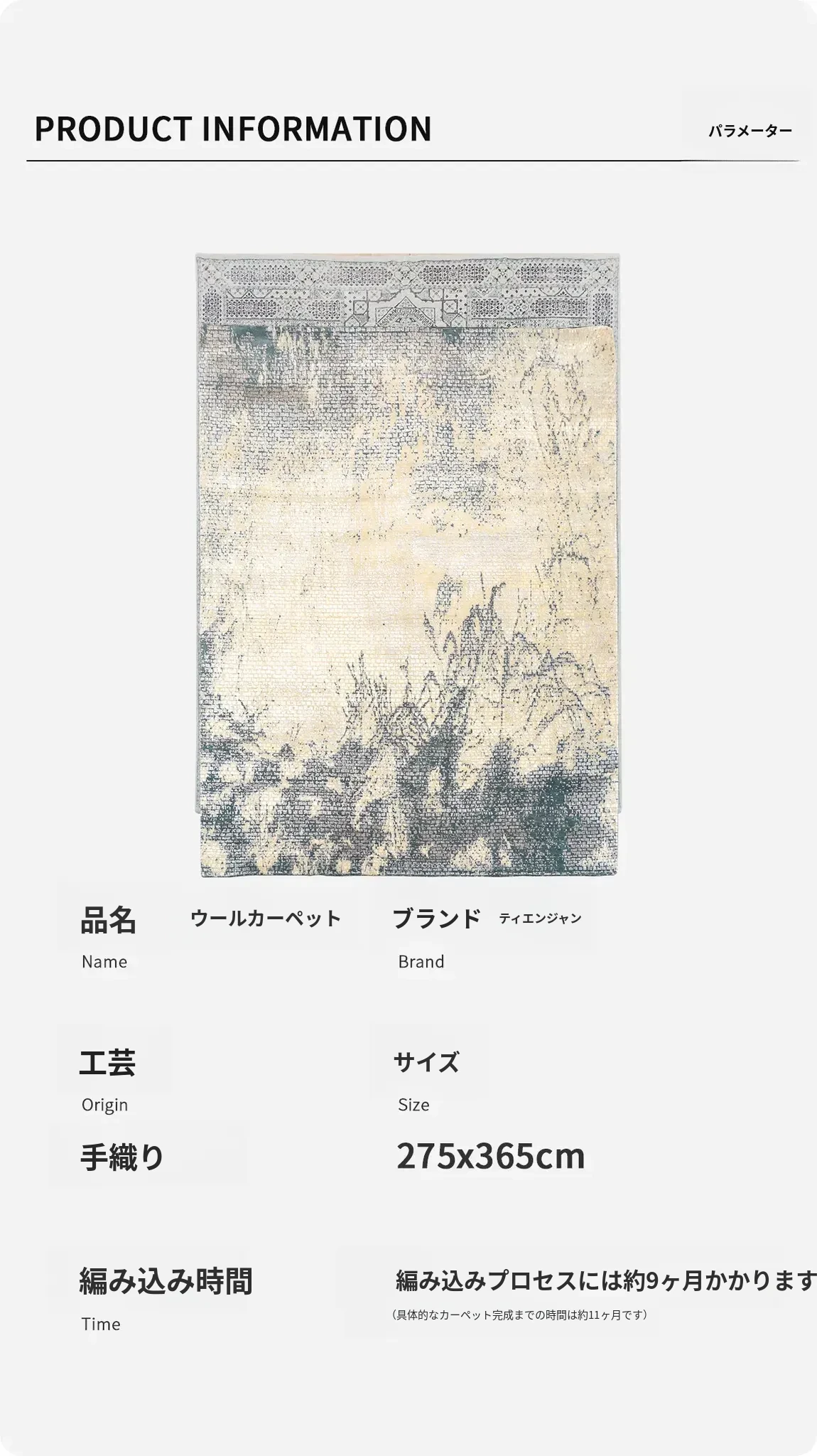 天匠の輸入手作りウールカーペット - シンプルでラグジュアリーなデザイン、別荘や寝室、リビング、書斎に最適!サイズ:275x375cmでお部屋を優雅に演出します。