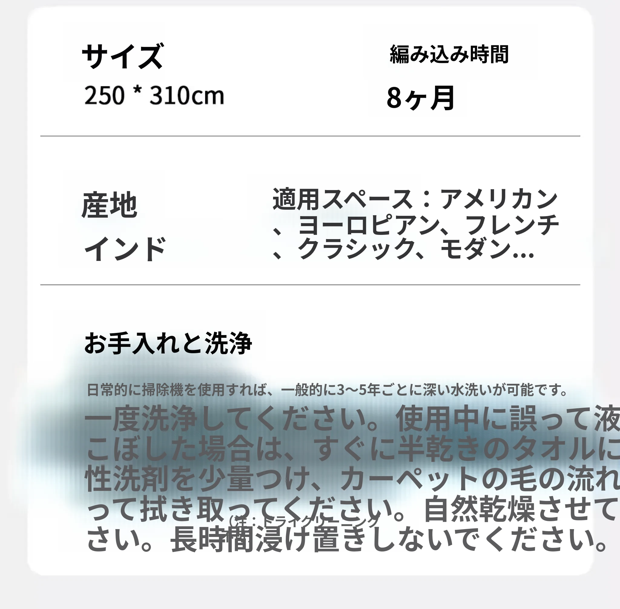 天匠インポート手作りウールカーペット - モダンなリビング&寝室用、全敷きタイプ、簡単お手入れ、サイズ244x302cmでお部屋を華やかに彩ります!