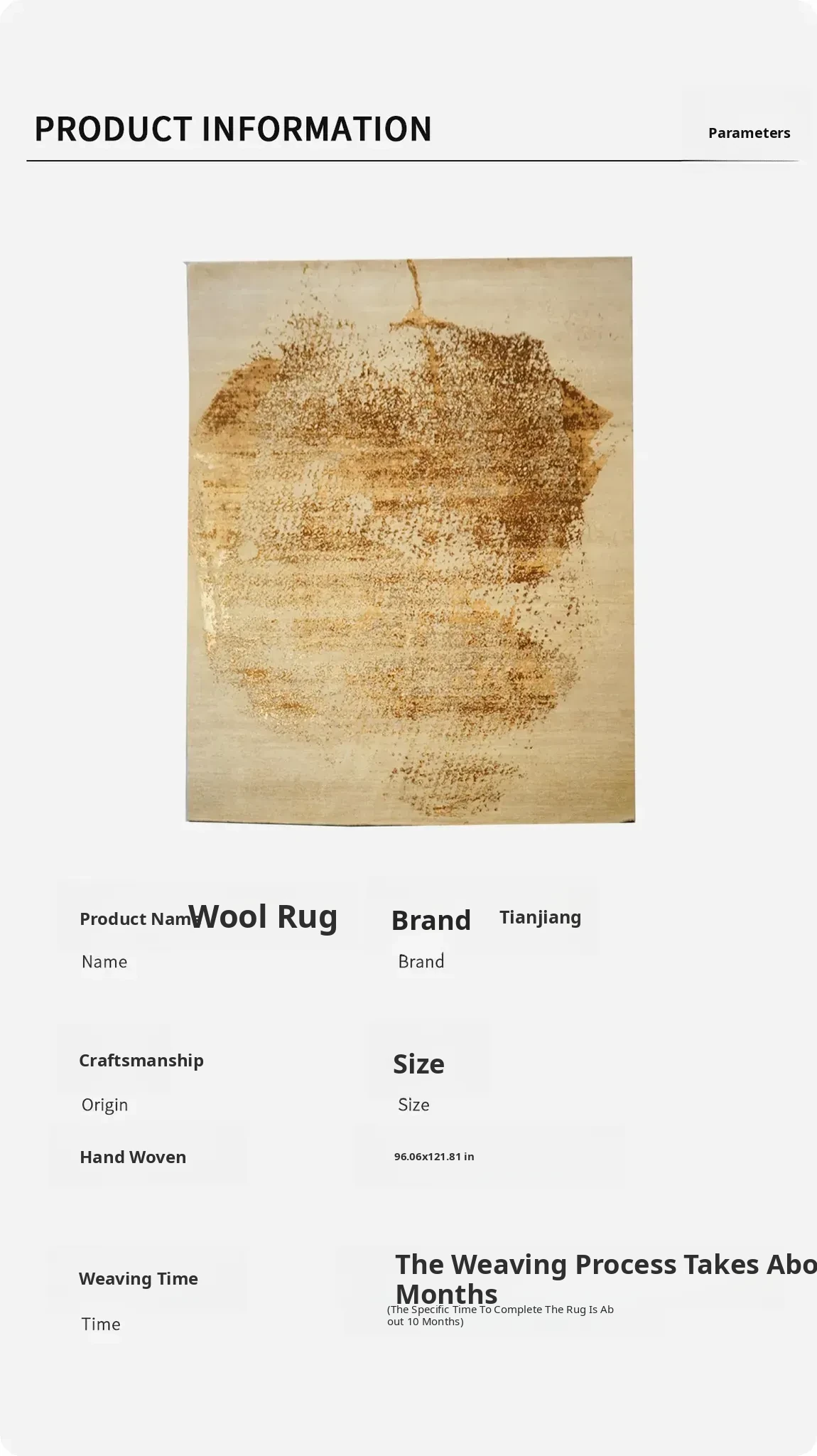 Tianjiang Imported Handmade Wool Carpet - Modern Luxurious Area Rug for Living Room, Bedroom, and Villa - Premium Quality 244x307cm
