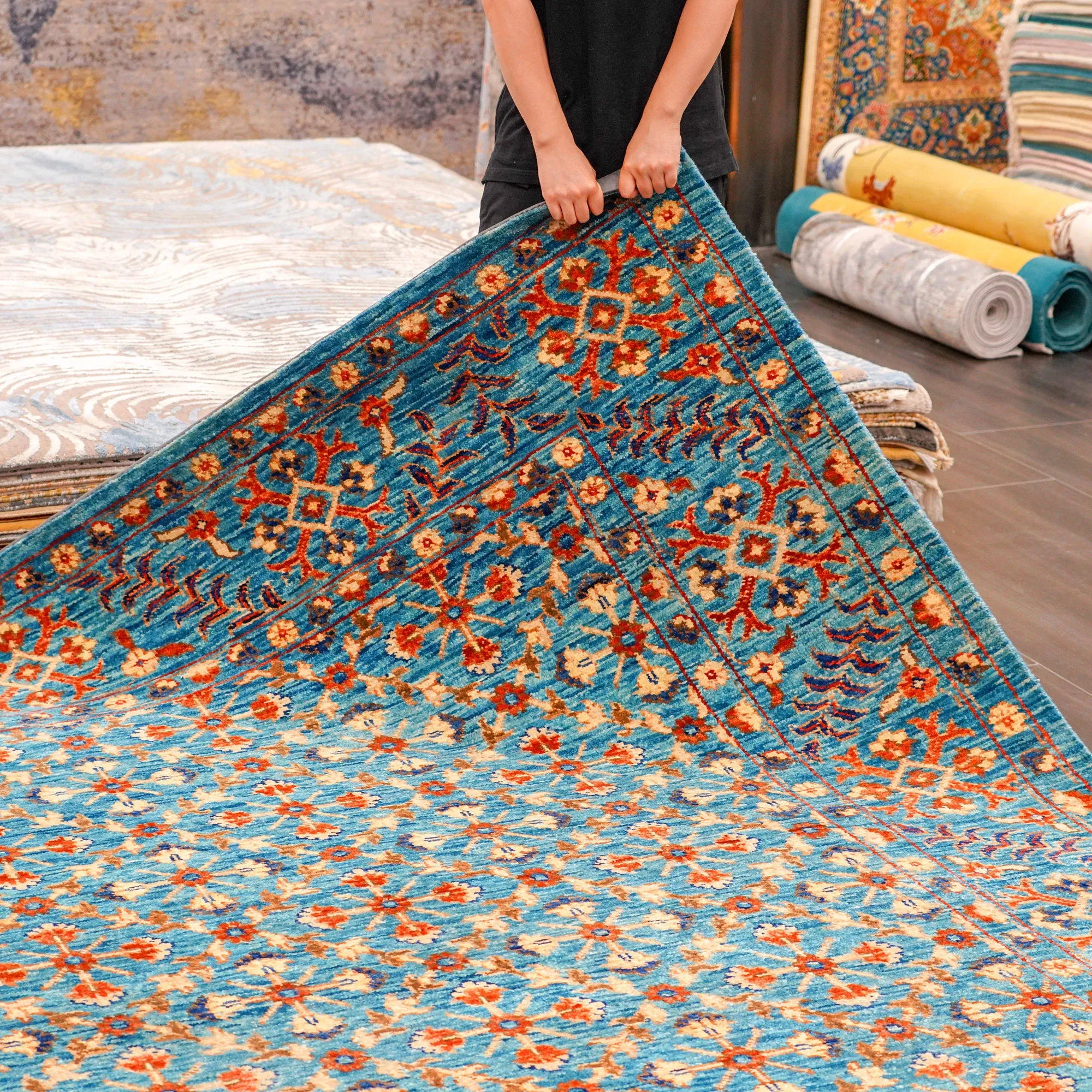 天匠輸入ハンドメイドウールカーペット - モダンなラグ、リビングルームや寝室に最適!軽やかでお手入れ簡単、サイズ248x306cmで高級感あふれる空間を演出します。