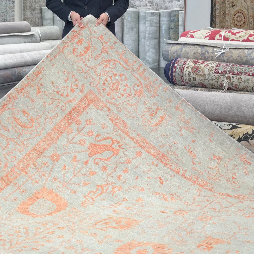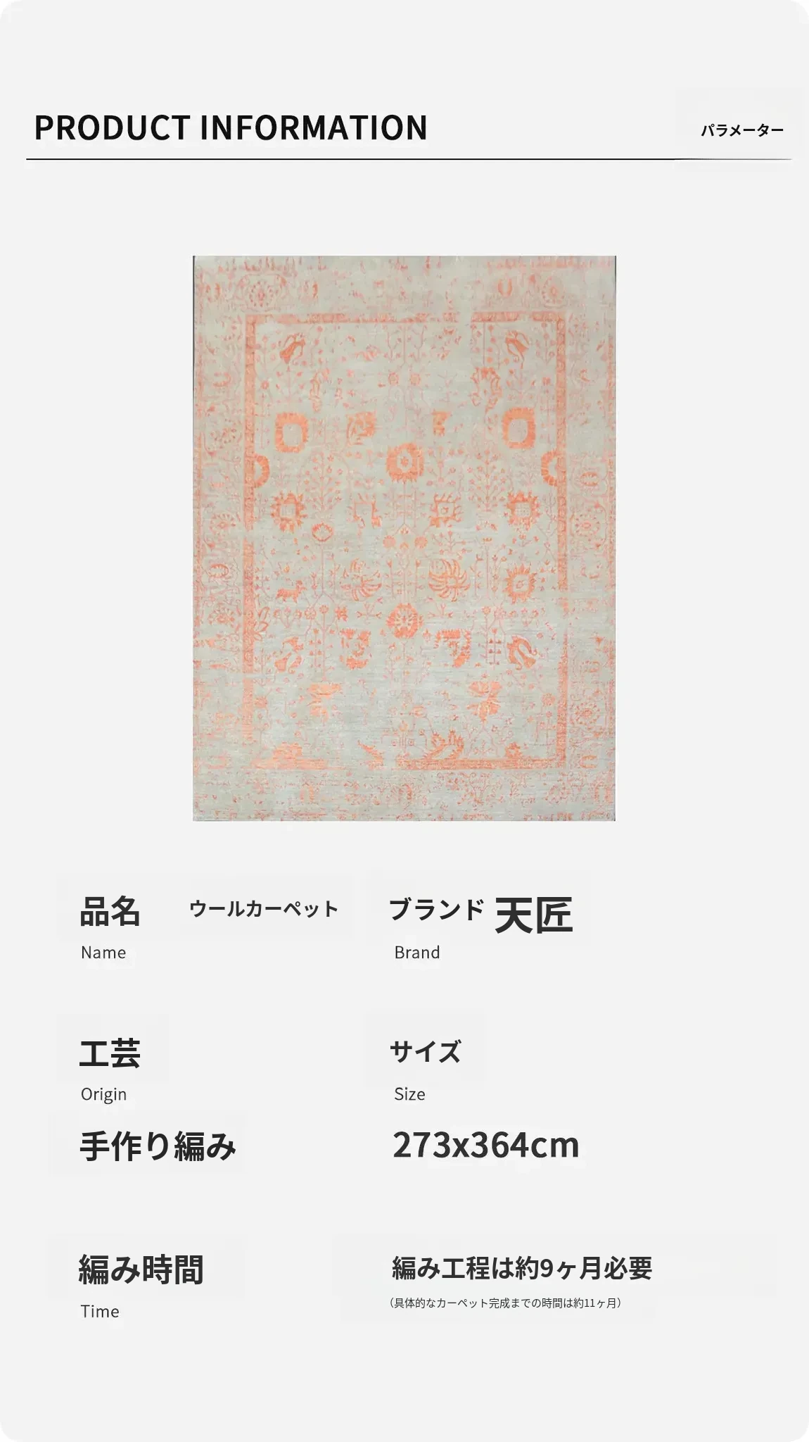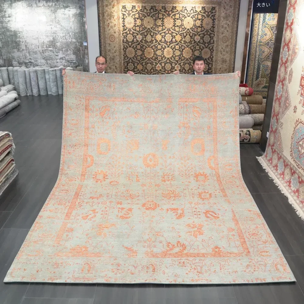 天匠の輸入ハンドメイドウールカーペット|現代的なシンプルデザイン|書斎やリビングに最適な273x364cmの美しいフラワーパターン!快適な空間を演出し、足元からの温もりをお届けします。