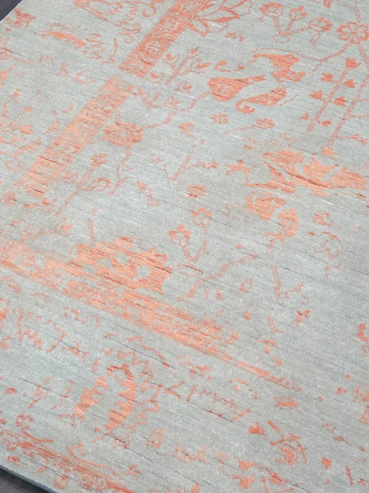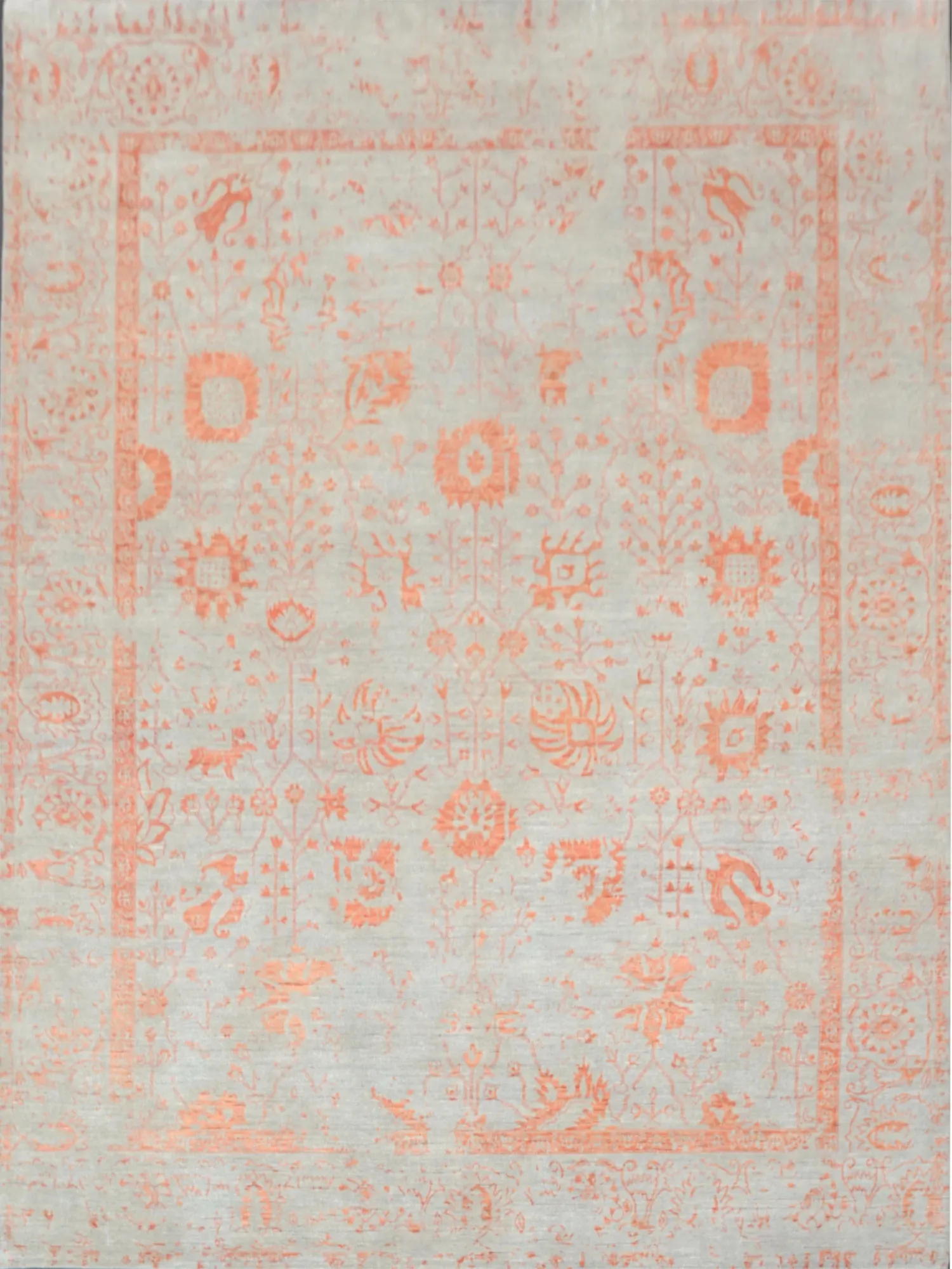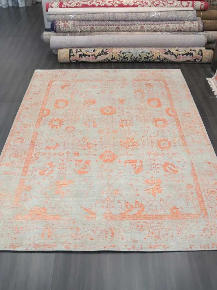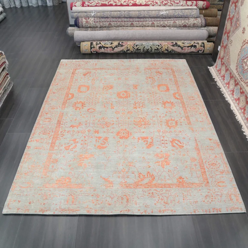 天匠の輸入ハンドメイドウールカーペット|現代的なシンプルデザイン|書斎やリビングに最適な273x364cmの美しいフラワーパターン!快適な空間を演出し、足元からの温もりをお届けします。