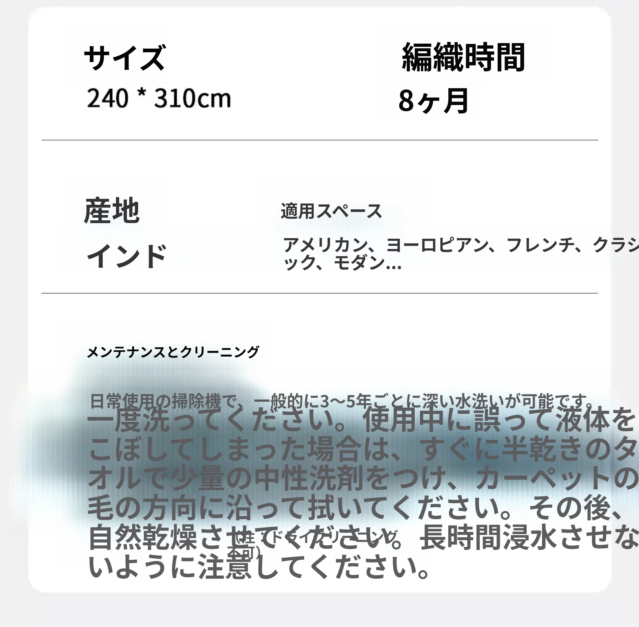 天匠輸入手作ウールカーペット 2024新作 ヴィラ用寝室カーペット 240x310cm 高品質で贅沢なデザイン、心地よい肌触りを実現!おしゃれな空間作りに最適です!