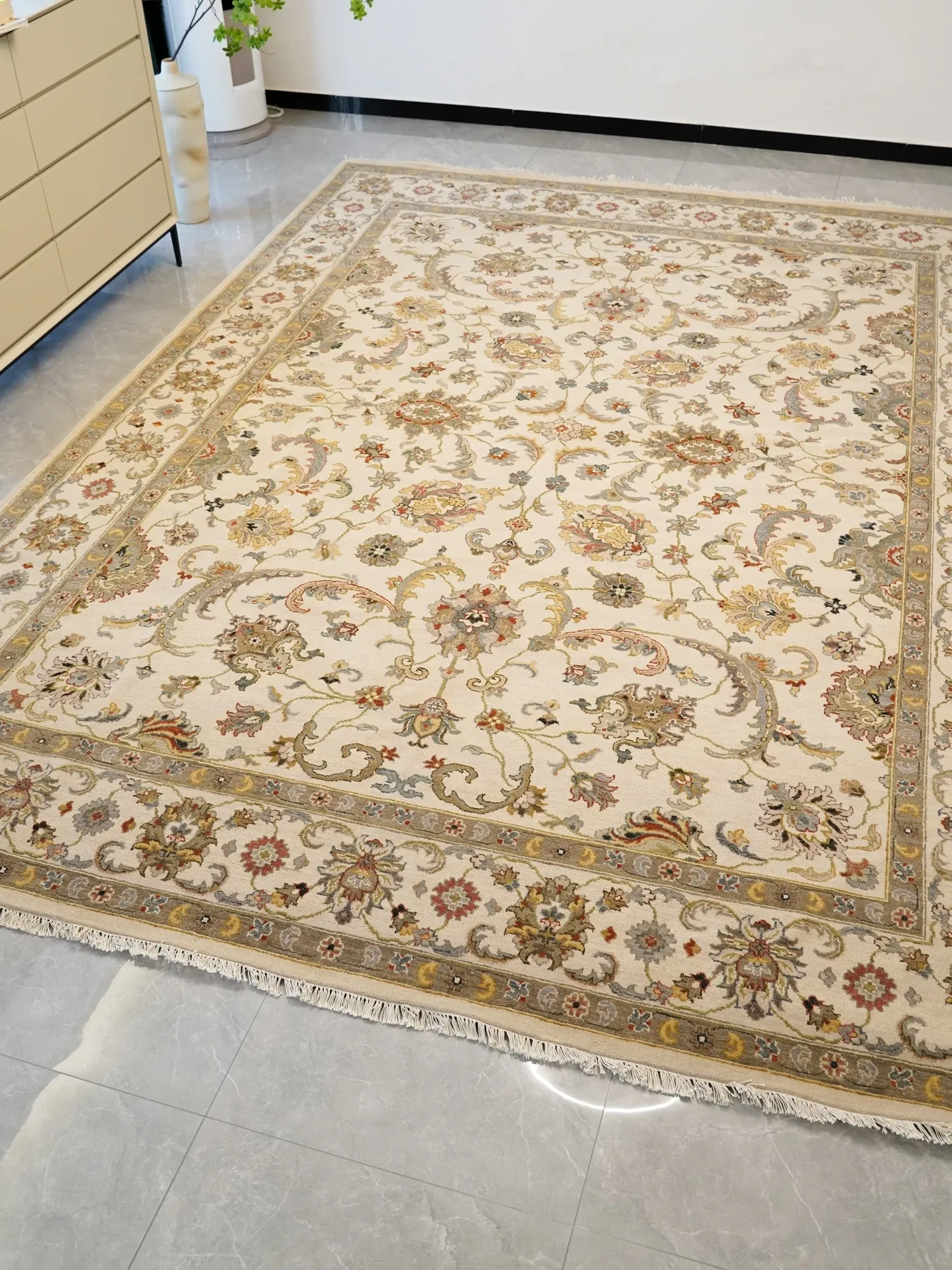 天匠の輸入手作りウールラグ - 高級感あふれるリビング・ダイニング用、266x364cmの贅沢なウールカーペットで、心地よい空間を演出!