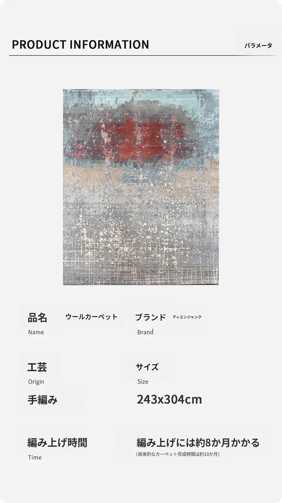 天匠輸入手作ウールカーペット - 高級感あふれる厚手のラグ、寝室にぴったりな243x304cmサイズで、贅沢なひとときをお楽しみください!