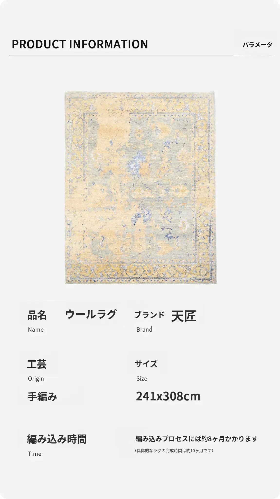 天匠インポート手作りウールカーペット - 2024年新作、寝室や書斎に最適!全フロアカバーリング、241x308cmのおしゃれなデザインで、お部屋を優雅に演出します。