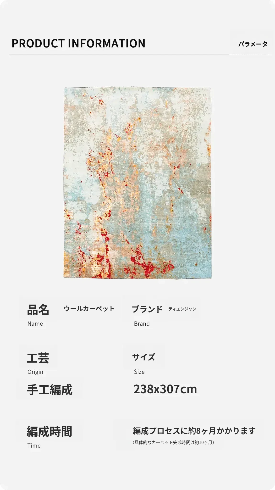 天匠の輸入手作りウールカーペット - リビングやダイニングに最適、使いやすくお手入れ簡単!サイズ238x307cmの多用途デザインで、あなたの家を優雅に演出します。