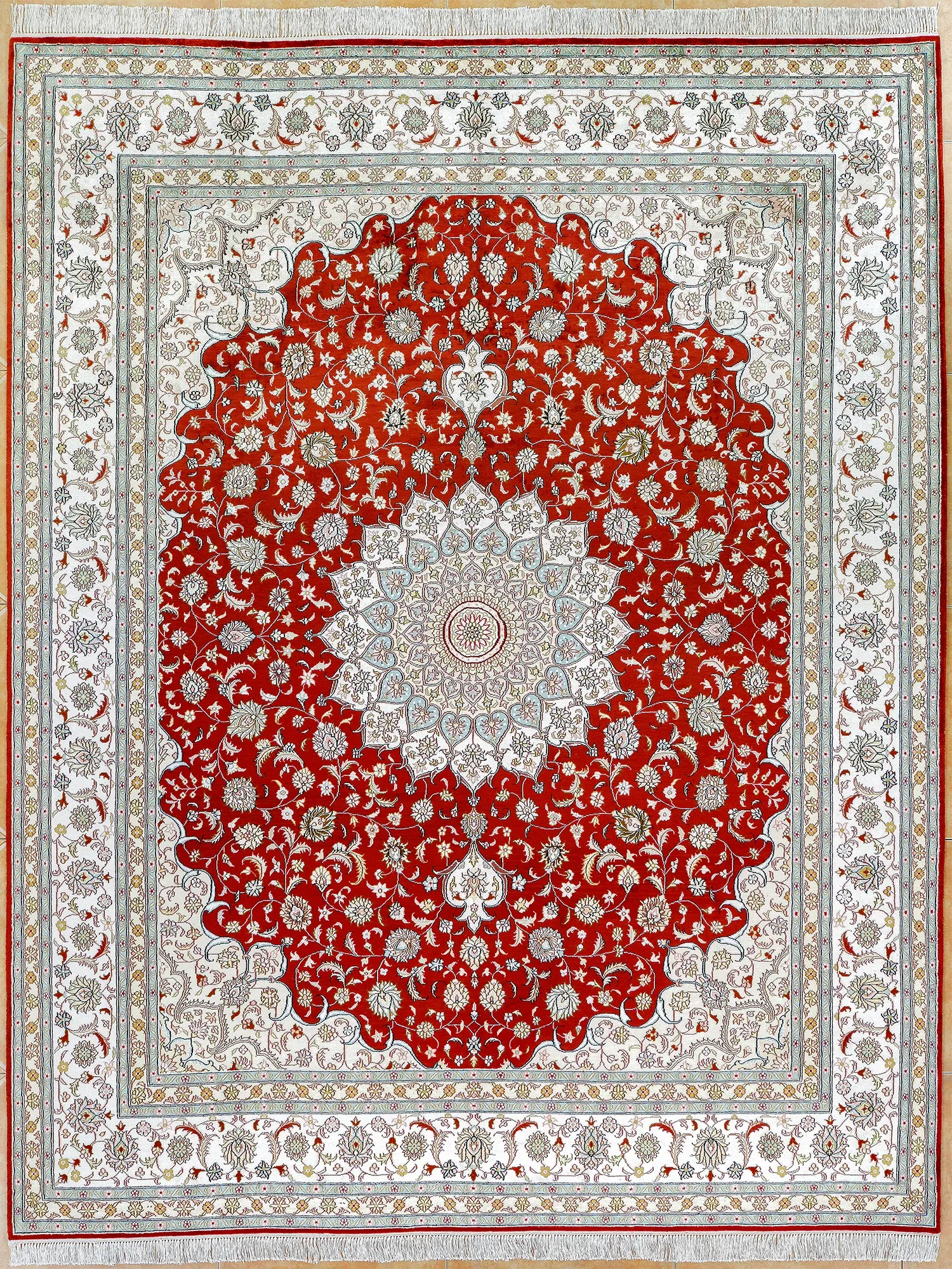 Handcrafted Silk Carpet in Red - Traditional Persian Design for Villas and Living Rooms, Perfect for Bedrooms, Size: 240x310cm