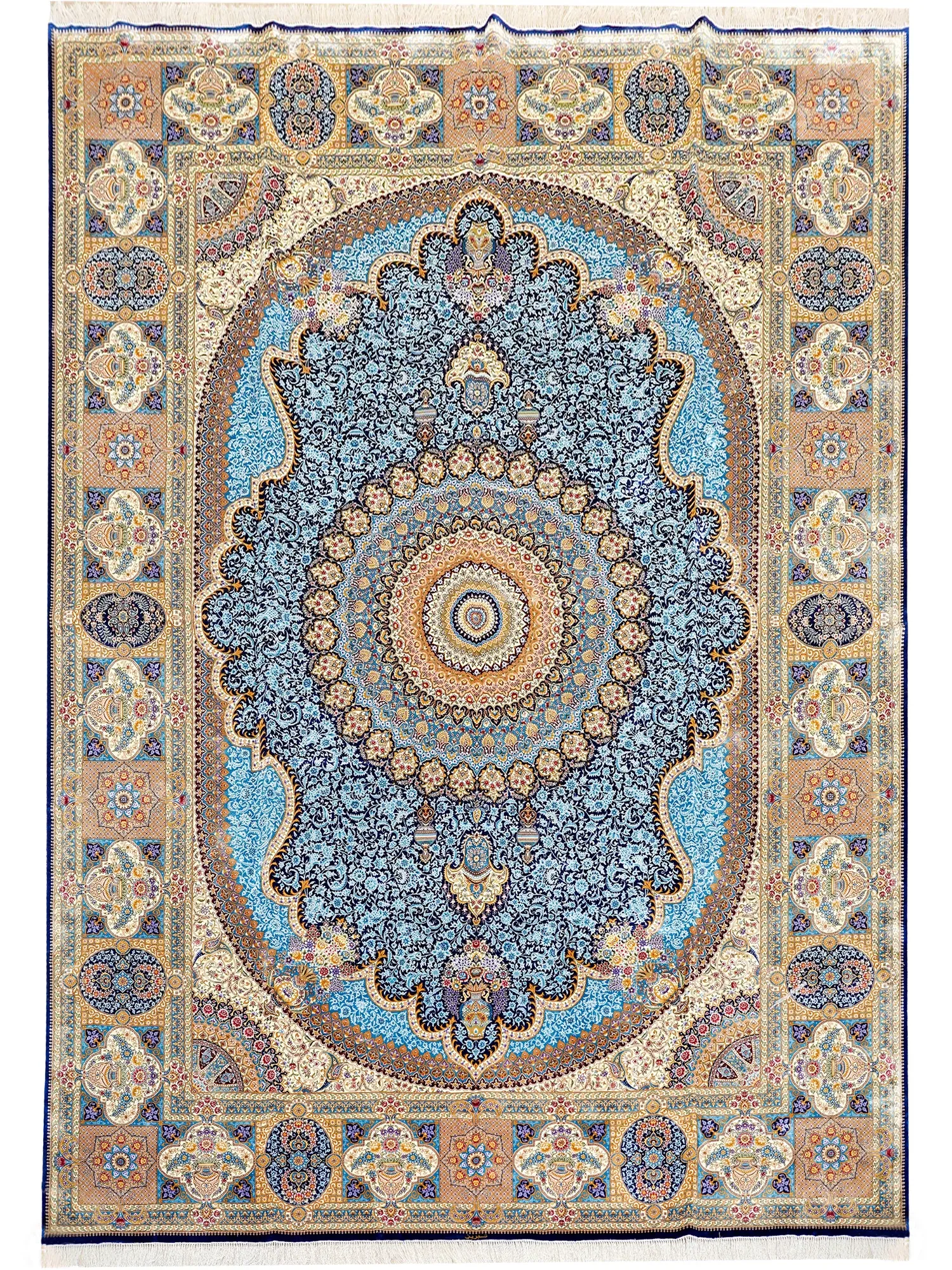 Heavenly Artisan Handcrafted Silk Carpet - Luxurious Blue Persian Area Rug from Iran, Perfect for Living Room & Bedroom, Size 310x430cm