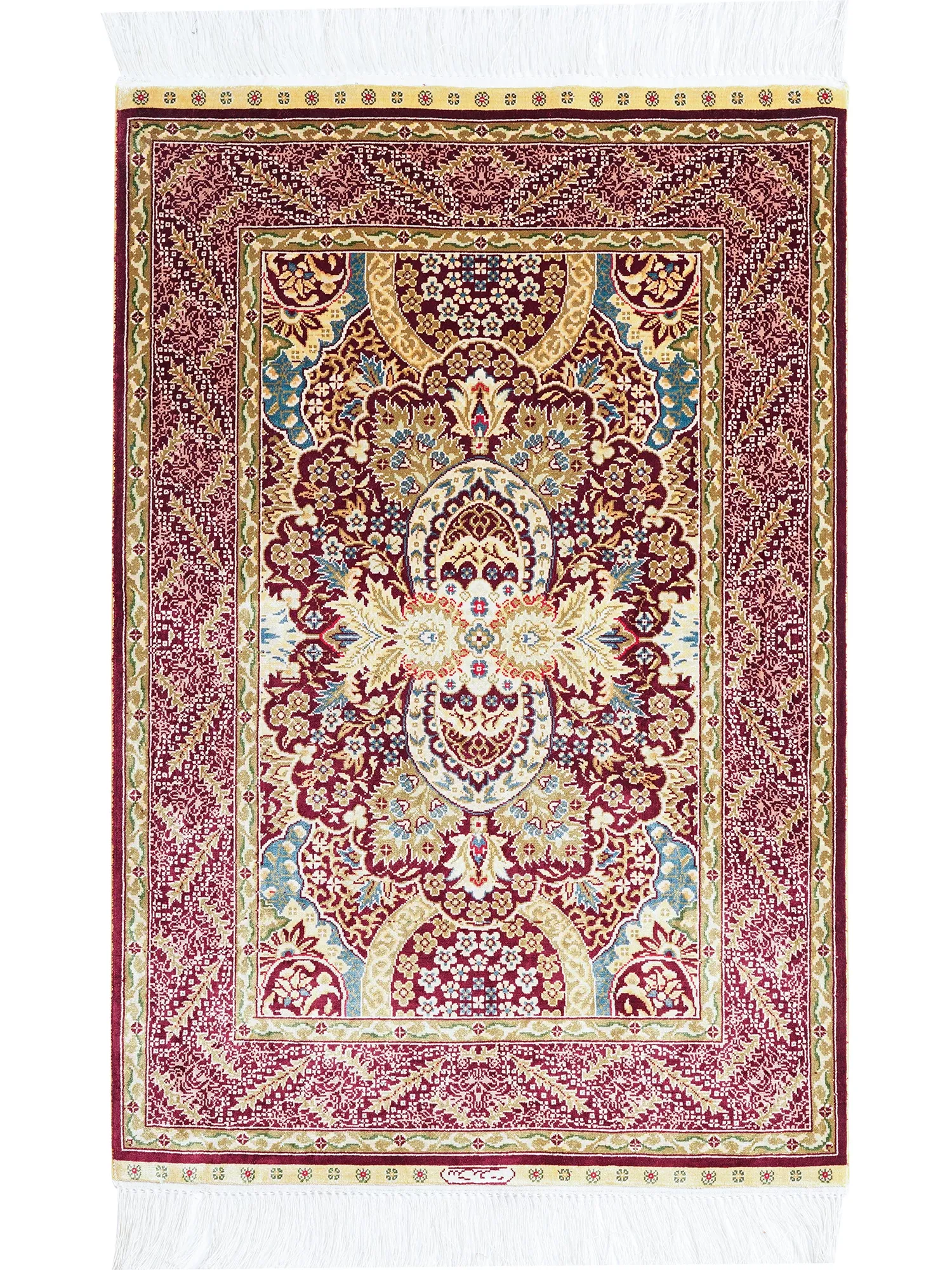 天匠手作のペルシャ絹織りラグ - 高級感溢れる手織りタペストリー、居心地の良い空間を演出する60x90cmのサイズ!