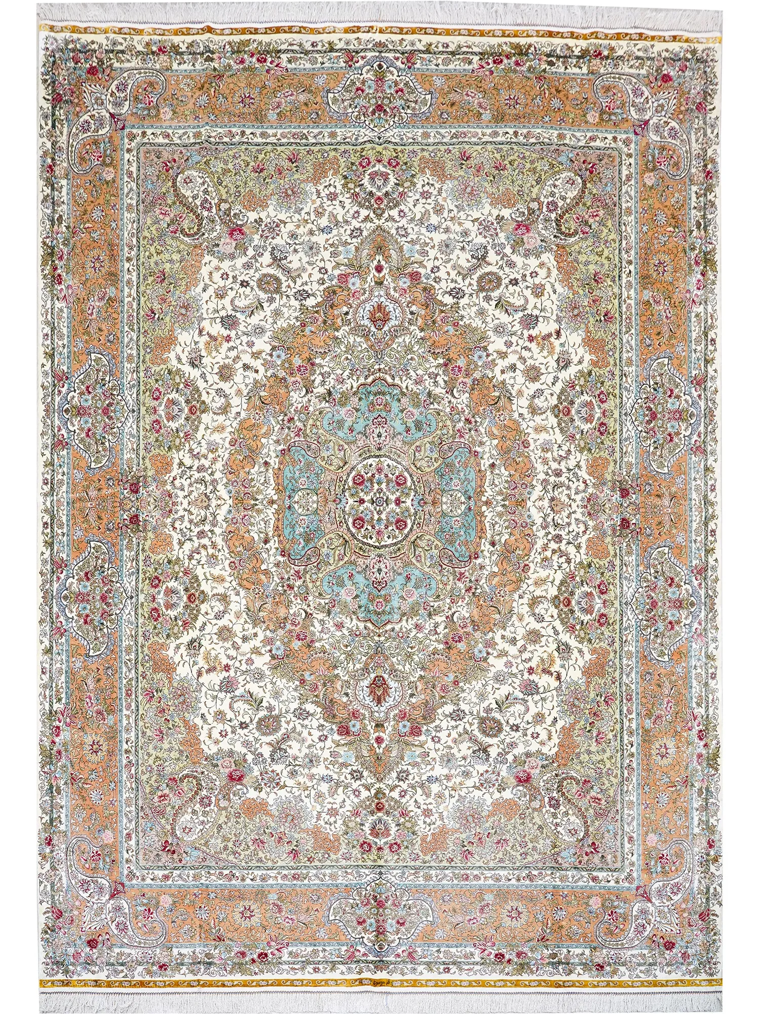 天匠の手作りシルクカーペット - 高級ヴィラのリビングや寝室にぴったりなペルシャ絨毯、240x310cmの贅沢なサイズで、あなたの空間を華やかに演出します。