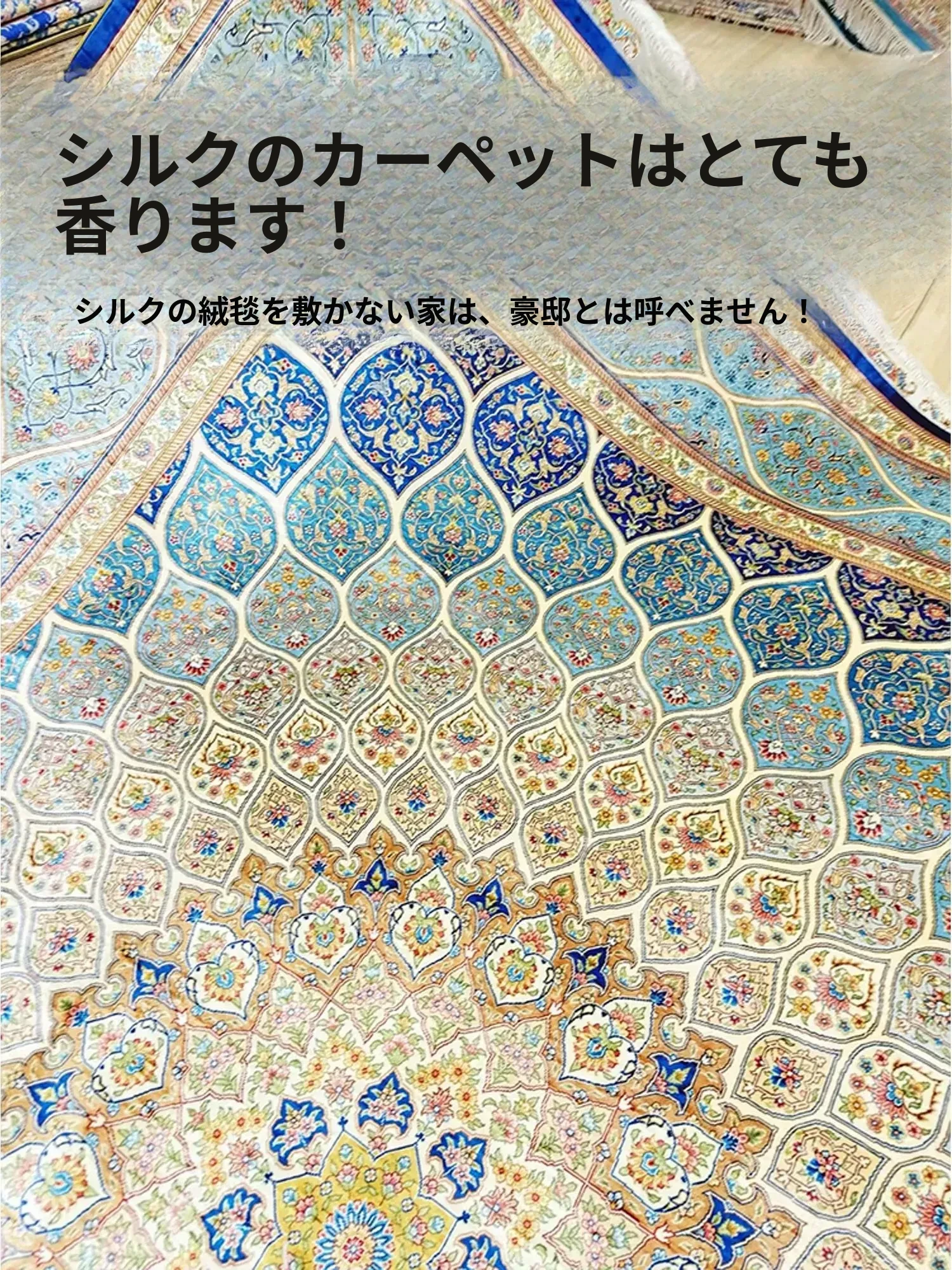 天匠手作シルクカーペット - トルコ製、豪華なヴィラのリビングや寝室に最適!180x270cmの贅沢なサイズで、優雅な空間を演出します。