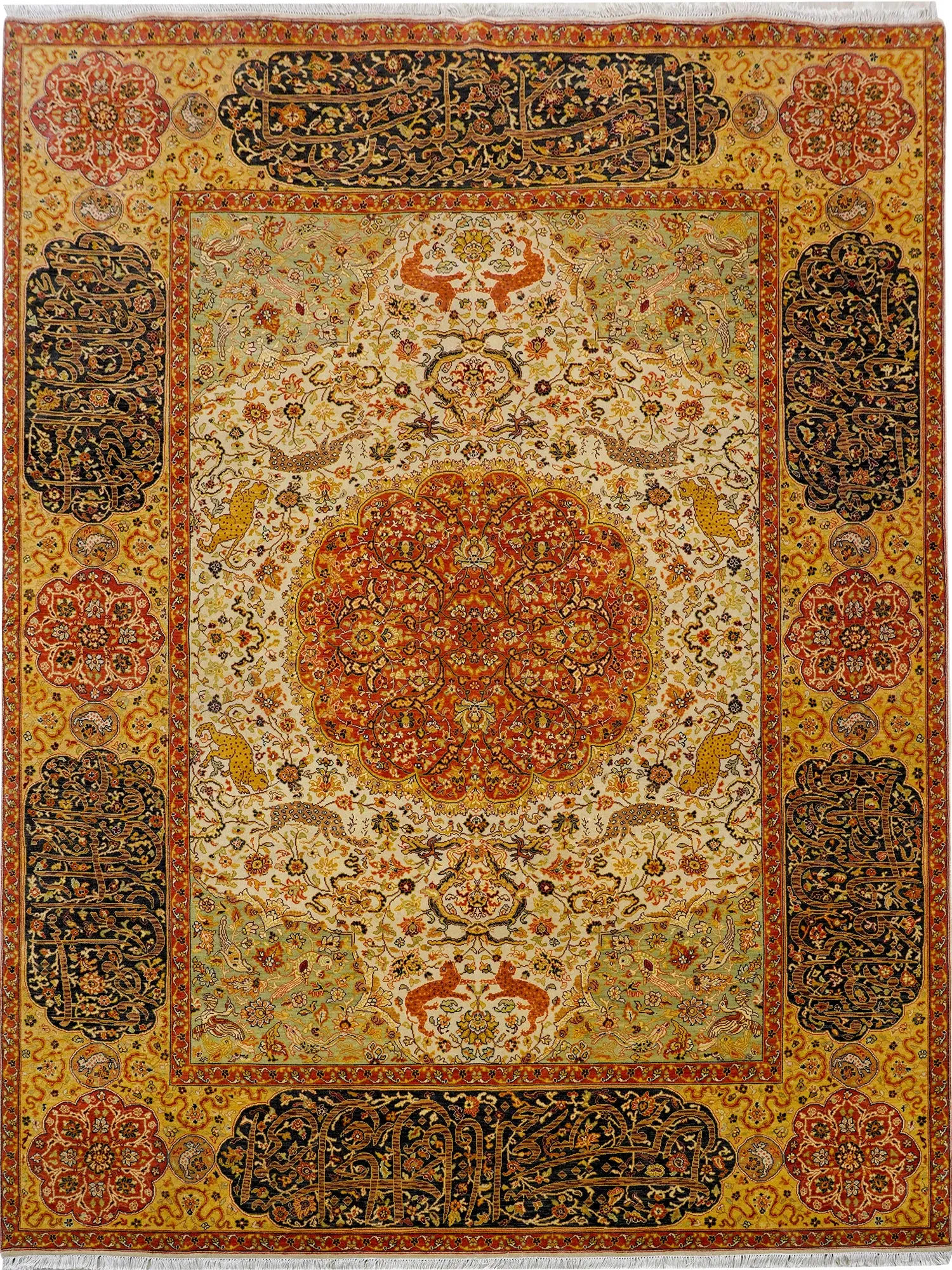 天匠の手作りウールカーペット、欧米向けクラシックペルシャスタイル!寝室や書斎にぴったりな172x244cmサイズ、上品なデザインでお部屋を華やかに彩ります。
