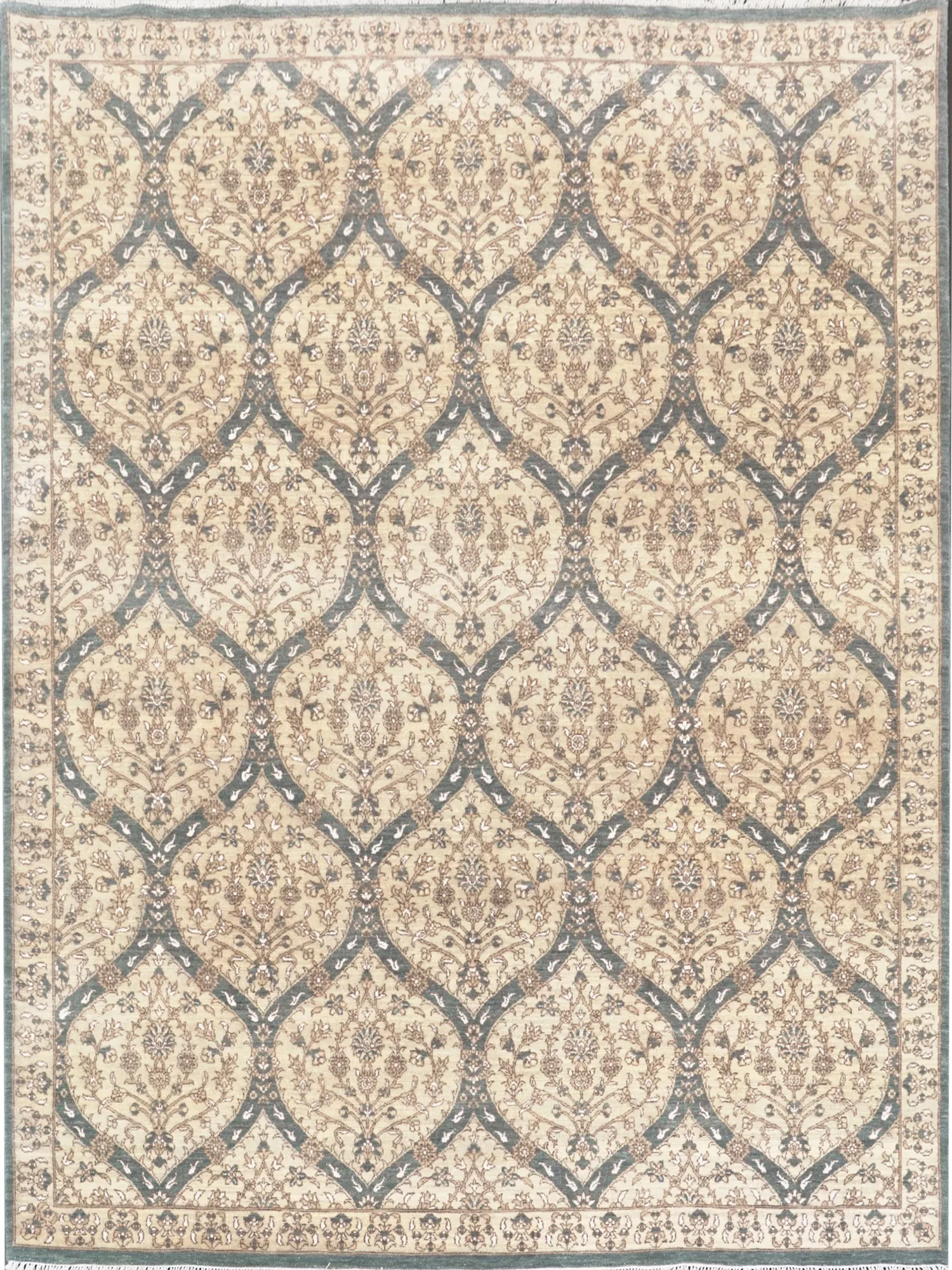 天匠の手作りウールカーペット - イタリアン&アメリカンスタイルのリビング&寝室にぴったりなラグ。高級感あふれるデザインで、360x462cmの広さを誇ります。心地よい触り心地と洗練された美しさをお楽しみください。
