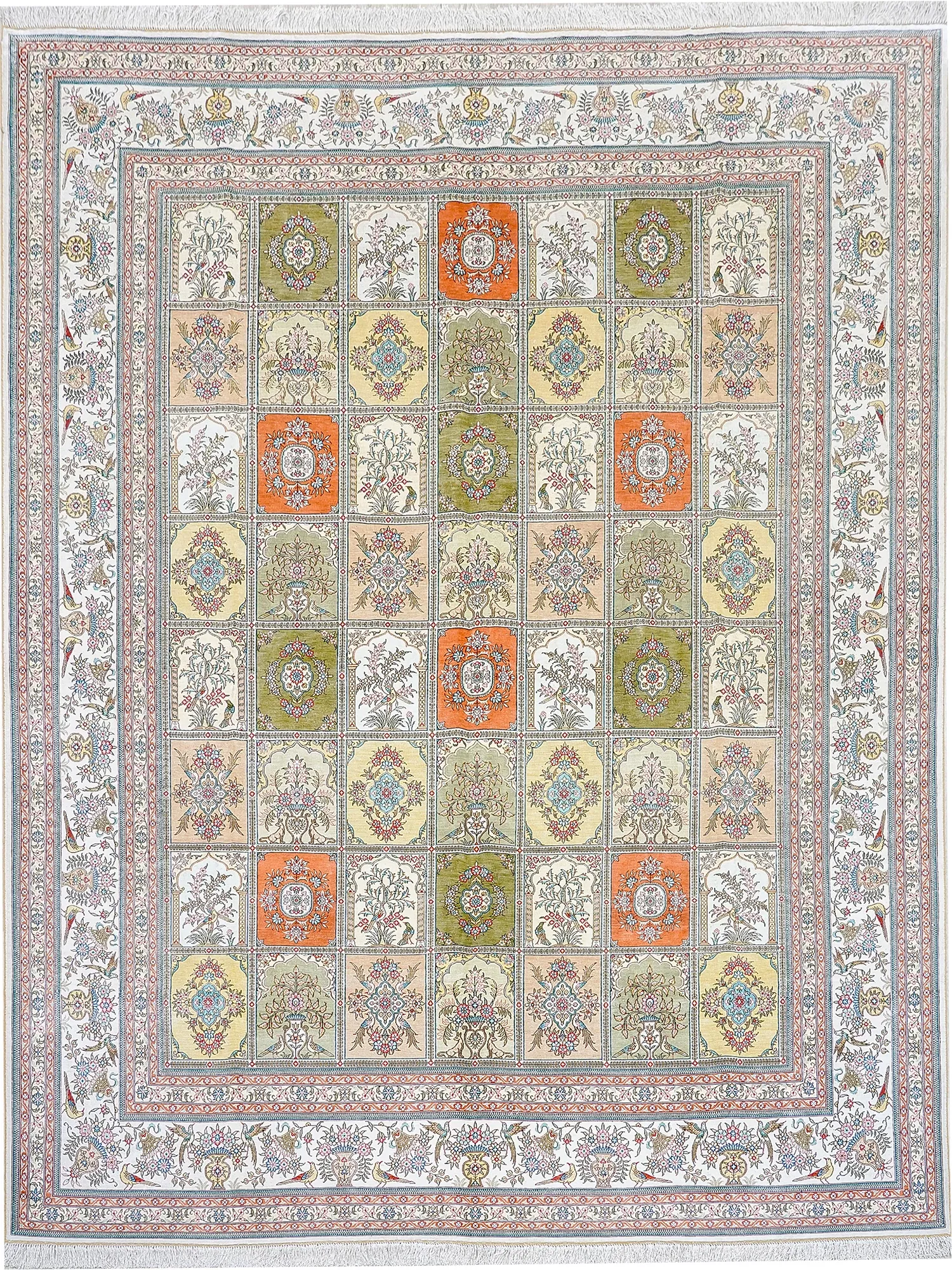 Handcrafted Genuine Silk Carpet - Versatile Garden Design for Living Room, Imported Turkish Carpet, 260x320cm - Elevate Your Home Décor with Luxurious Elegance!