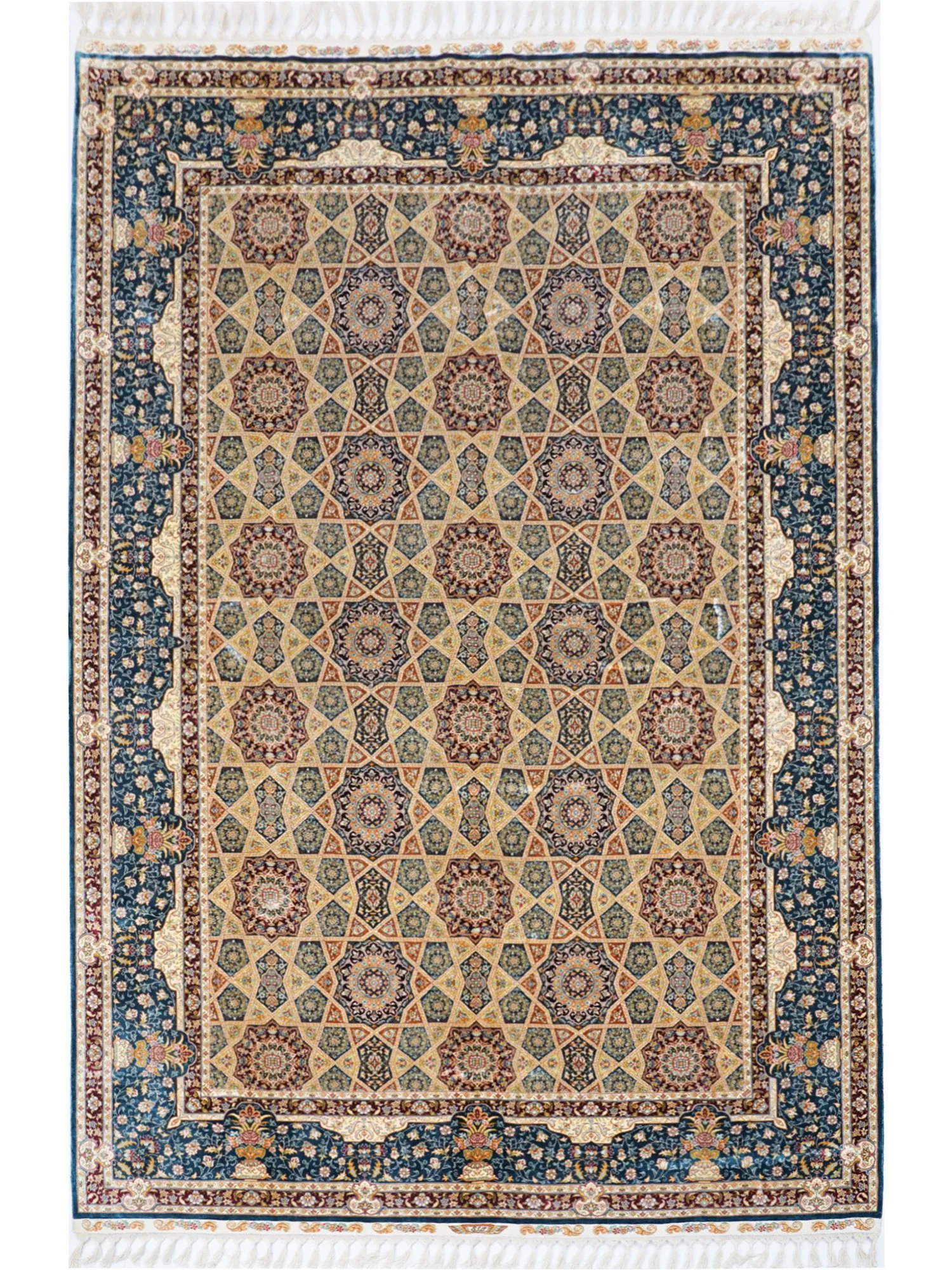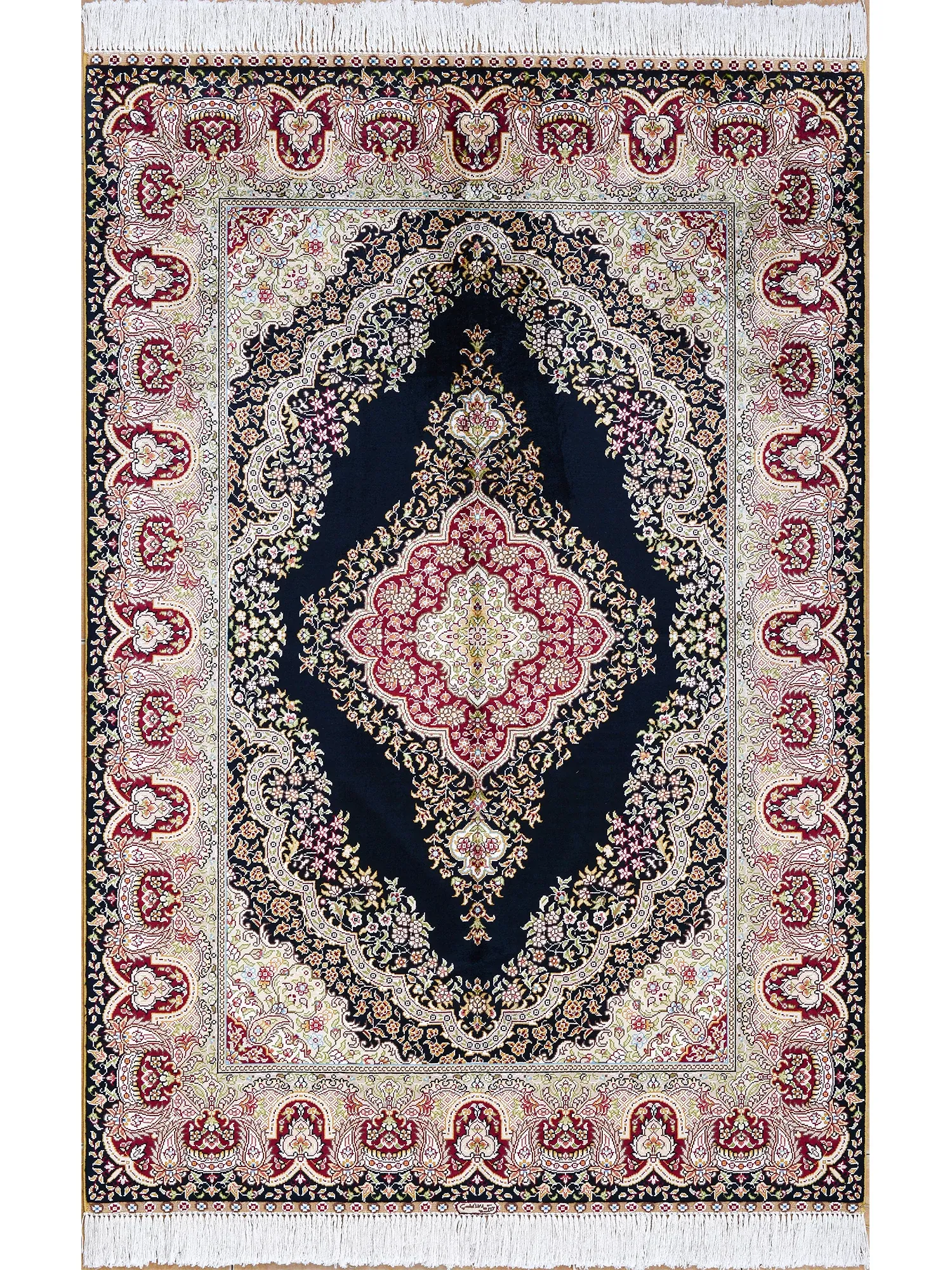 天匠の手作りシルクカーペット、ヨーロッパ・アメリカ向け輸出品。美しいペルシャ柄のオシャレな欧風リビングカーペット、サイズ200x300cmでお部屋を華やかに演出します!