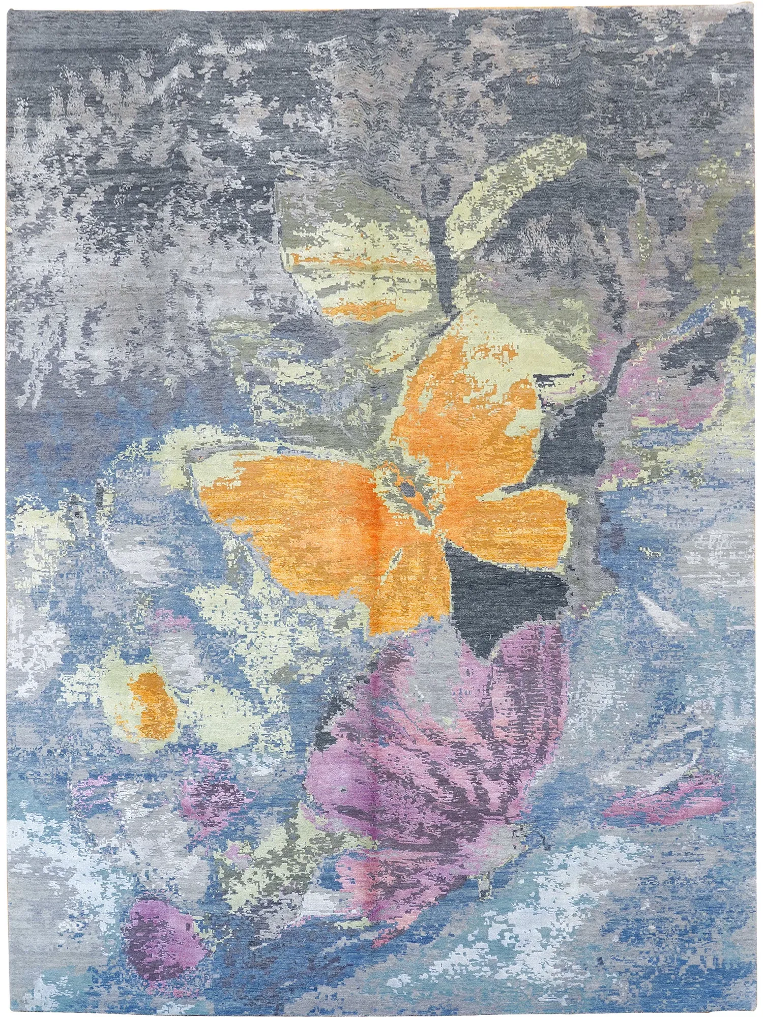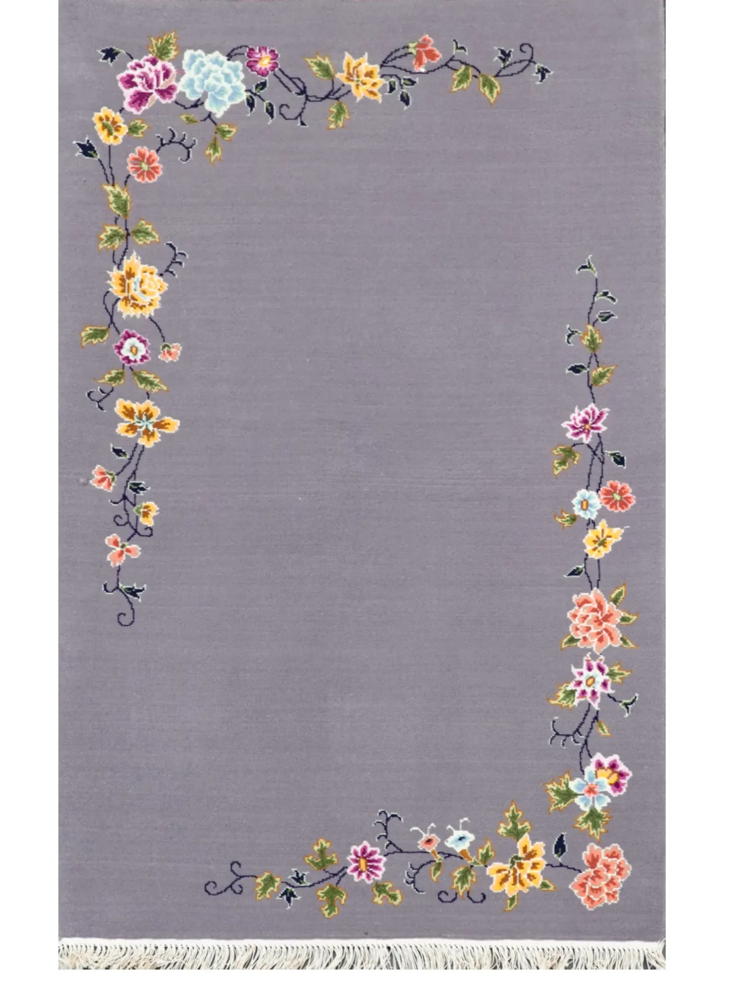 手作真丝カーペット - フラワーデザイン、フォーマルな書斎やダイニングに最適!270x370cmの大判サイズで、フォルムを引き立て、ホルムアルデヒドフリーで安心。高級感あふれる耐汚れ仕様で、エレガントな空間を演出します。