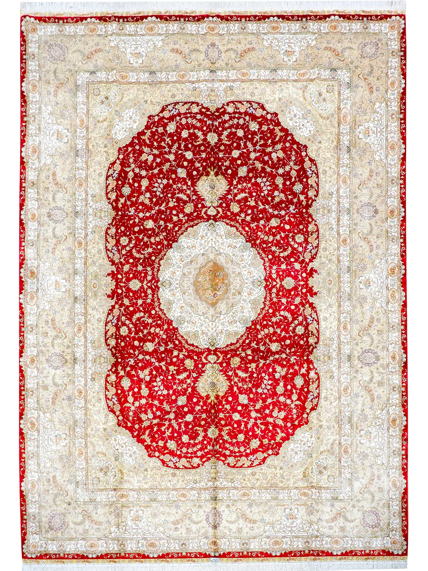 高級手作真丝ペルシャ絨毯 - 鮮やかな赤色が映える310x430cmのリビング用カーペット、贅沢な空間を演出!