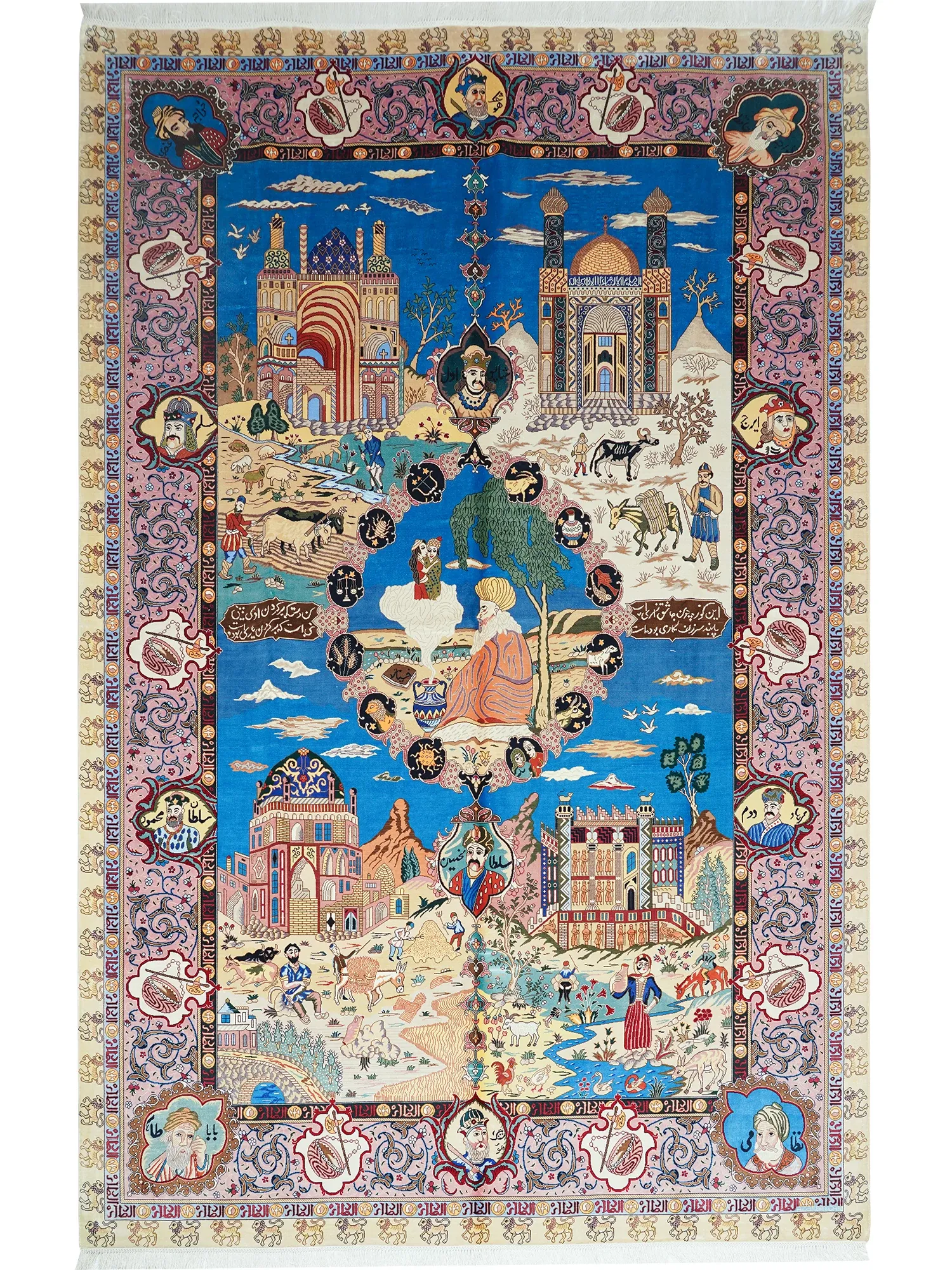 天匠手作の本格シルクカーペット - フォーマルなリビングに最適なペルシャデザイン!ホルムアルデヒドフリー、アメリカンスタイルのトレンドアイテム。305x305cmのゆったりサイズで、贅沢な空間を演出します。