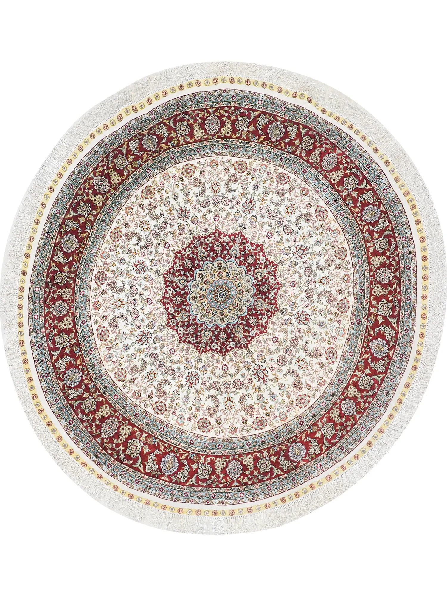 天匠の手作りシルクラグ - ヴィラのリビングや寝室にぴったりな240x240cmの円形ペルシャ絨毯。高級感あふれるデザインで、居心地の良い空間を演出します。