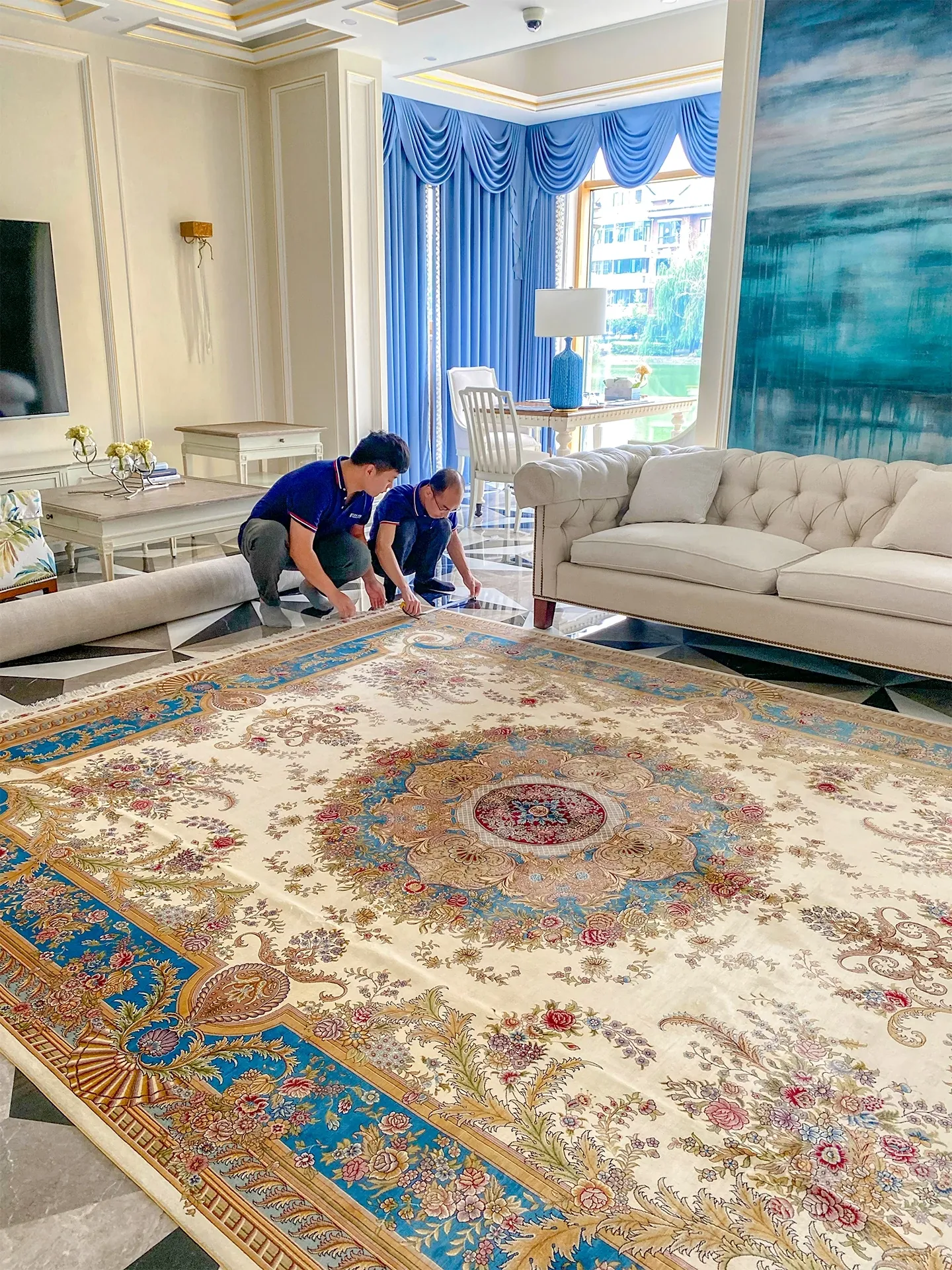 天匠インポート手作りウールカーペット ヴィラの書斎にぴったり!デザイナー推奨のマルチユースカーペット 247x304cm