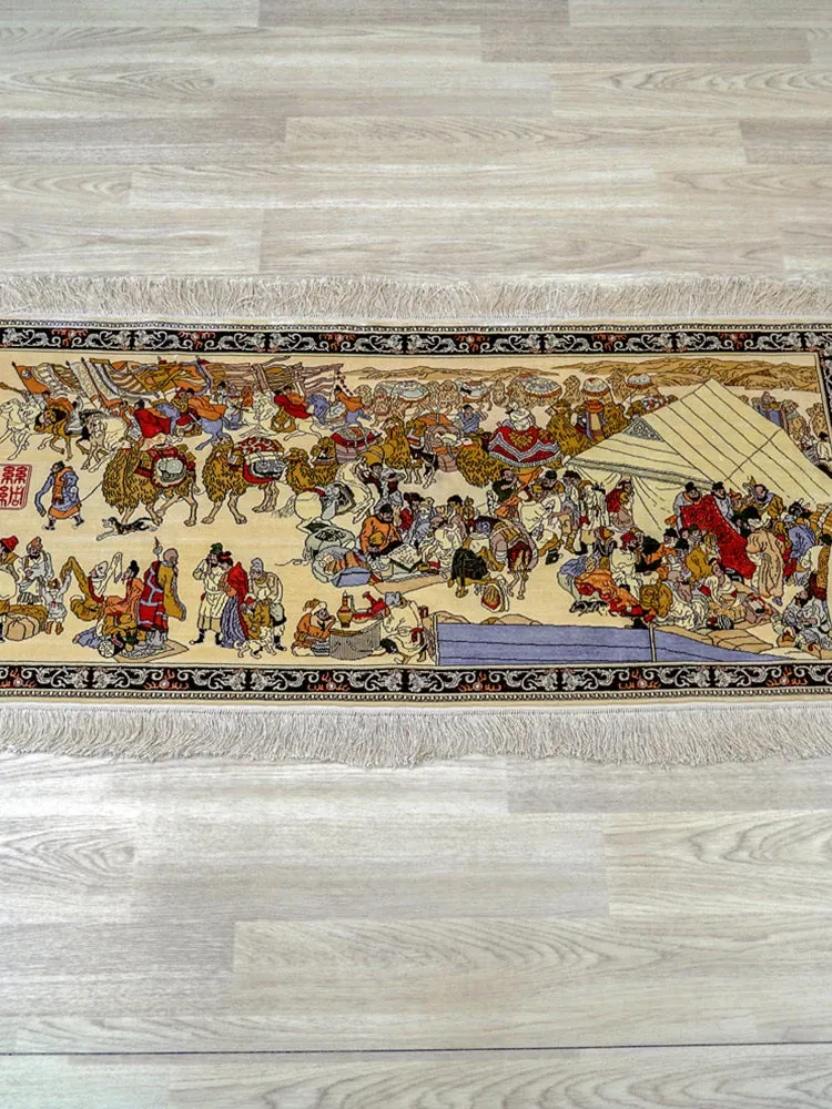 天匠地毯60x120cm 全国どこでも試し敷きサービス!シルクロードの美しい風景を描いたデザインで、あなたの空間を華やかに演出します。高品質な素材で、心地よい触り心地を実現。