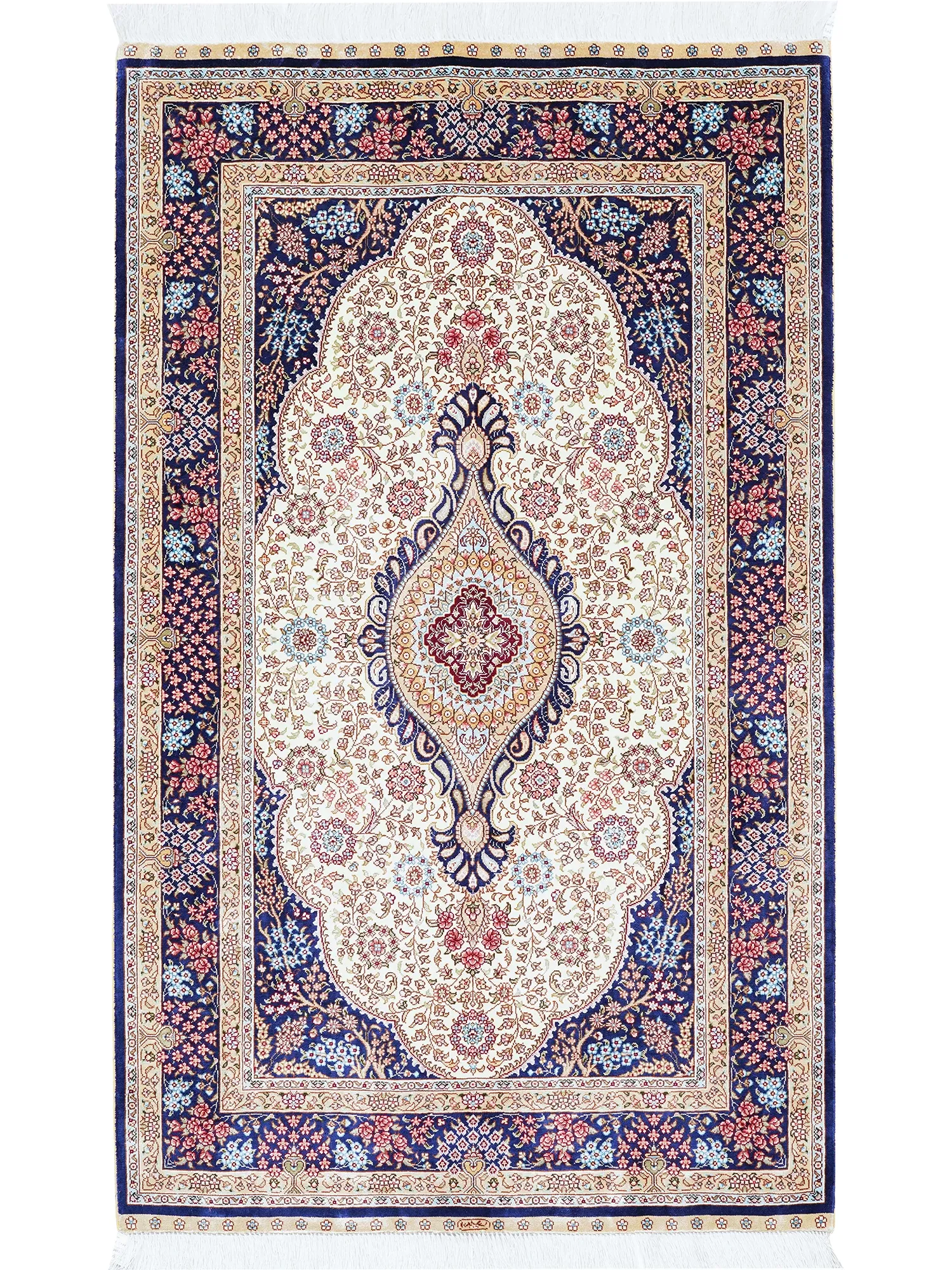 天匠手作の本物シルク製ペルシャカーペット - リビングや書斎にぴったり!贅沢な60x90cmサイズで、インテリアを華やかに演出します。お家に温かみと高級感をプラス!