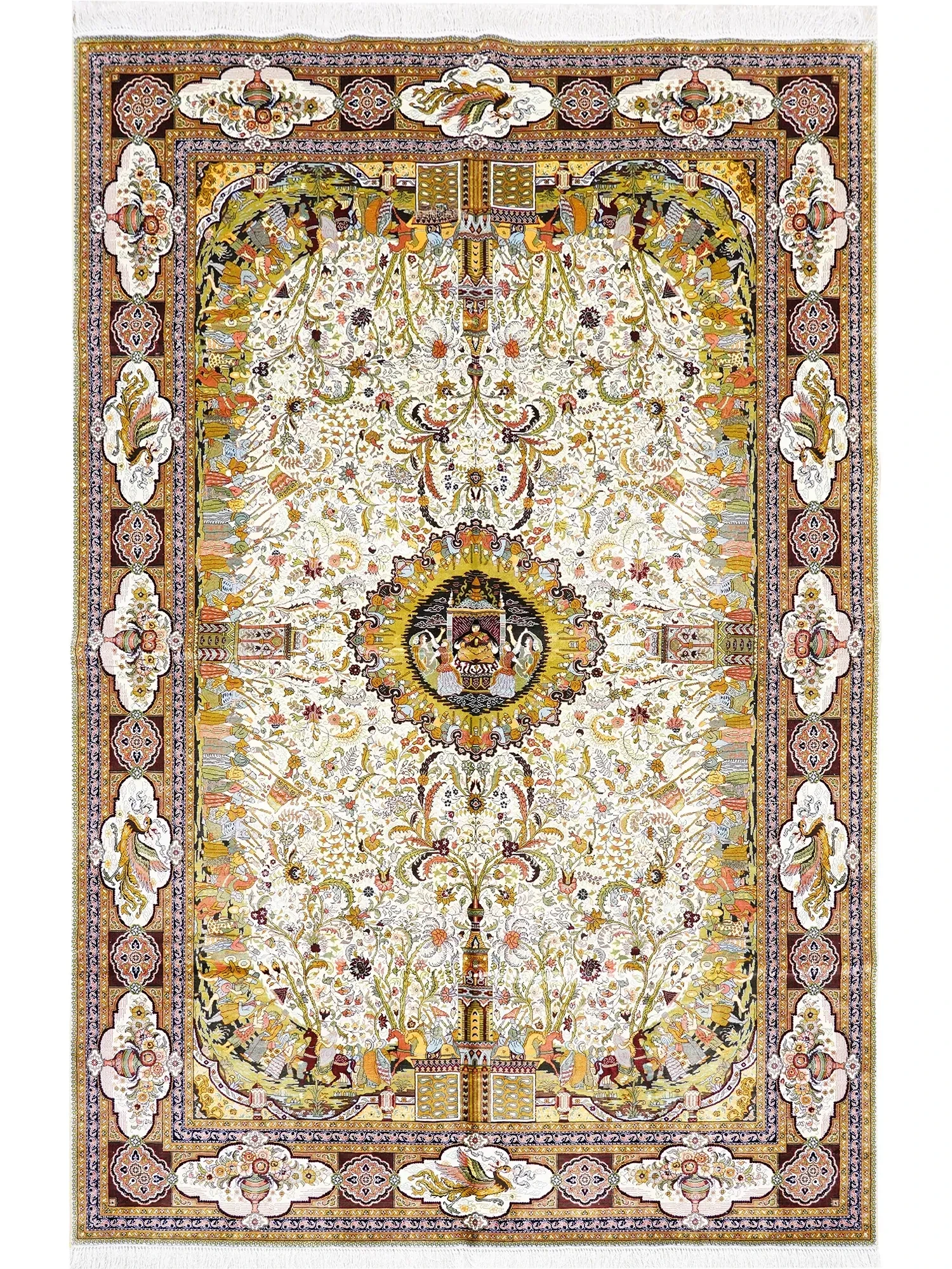 天匠の手作りシルクカーペット - イラン製の高級ヴィラ向けアートカーペット、310x430cmの贅沢なサイズで、あなたの空間を華やかに彩ります!